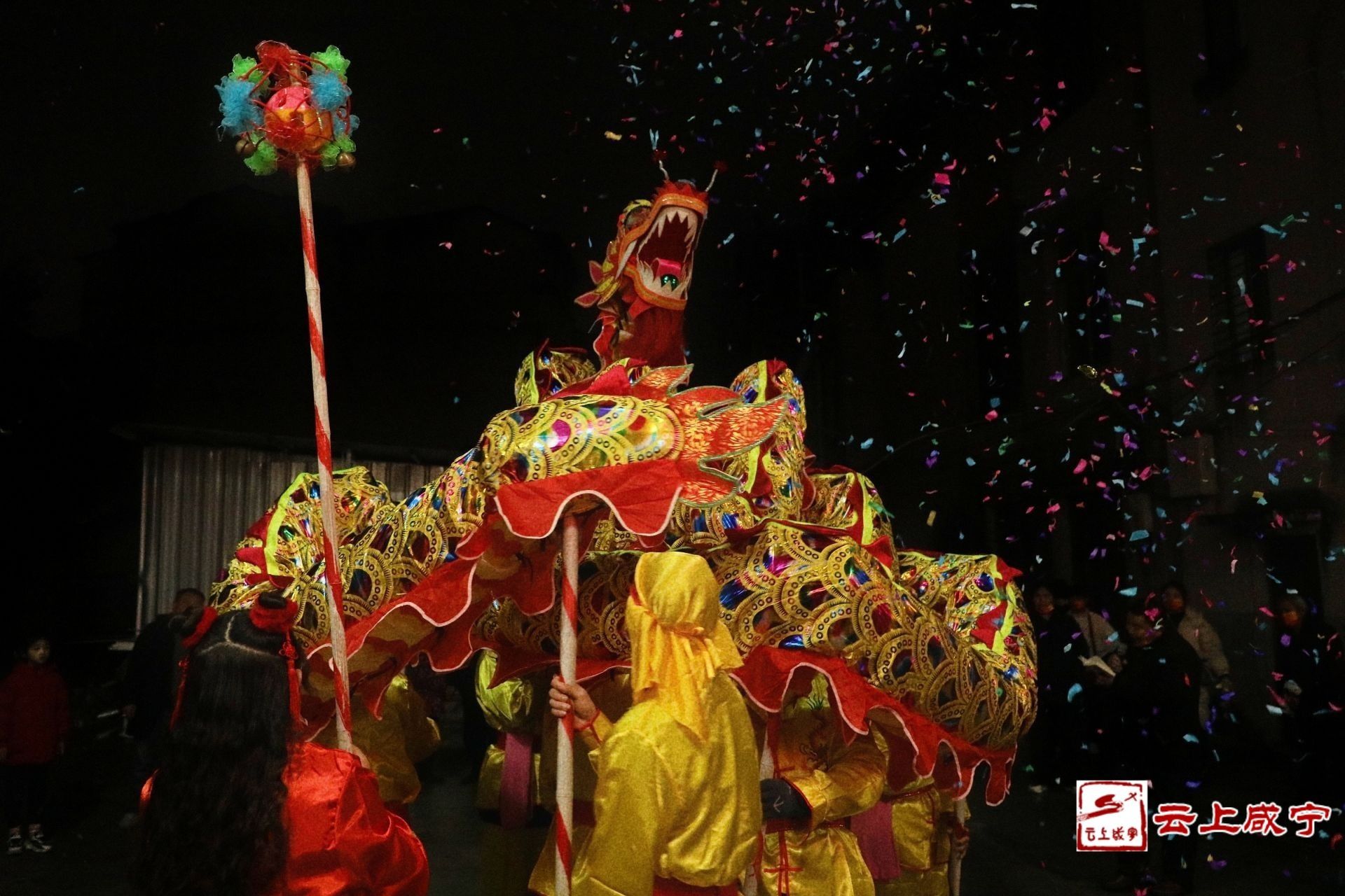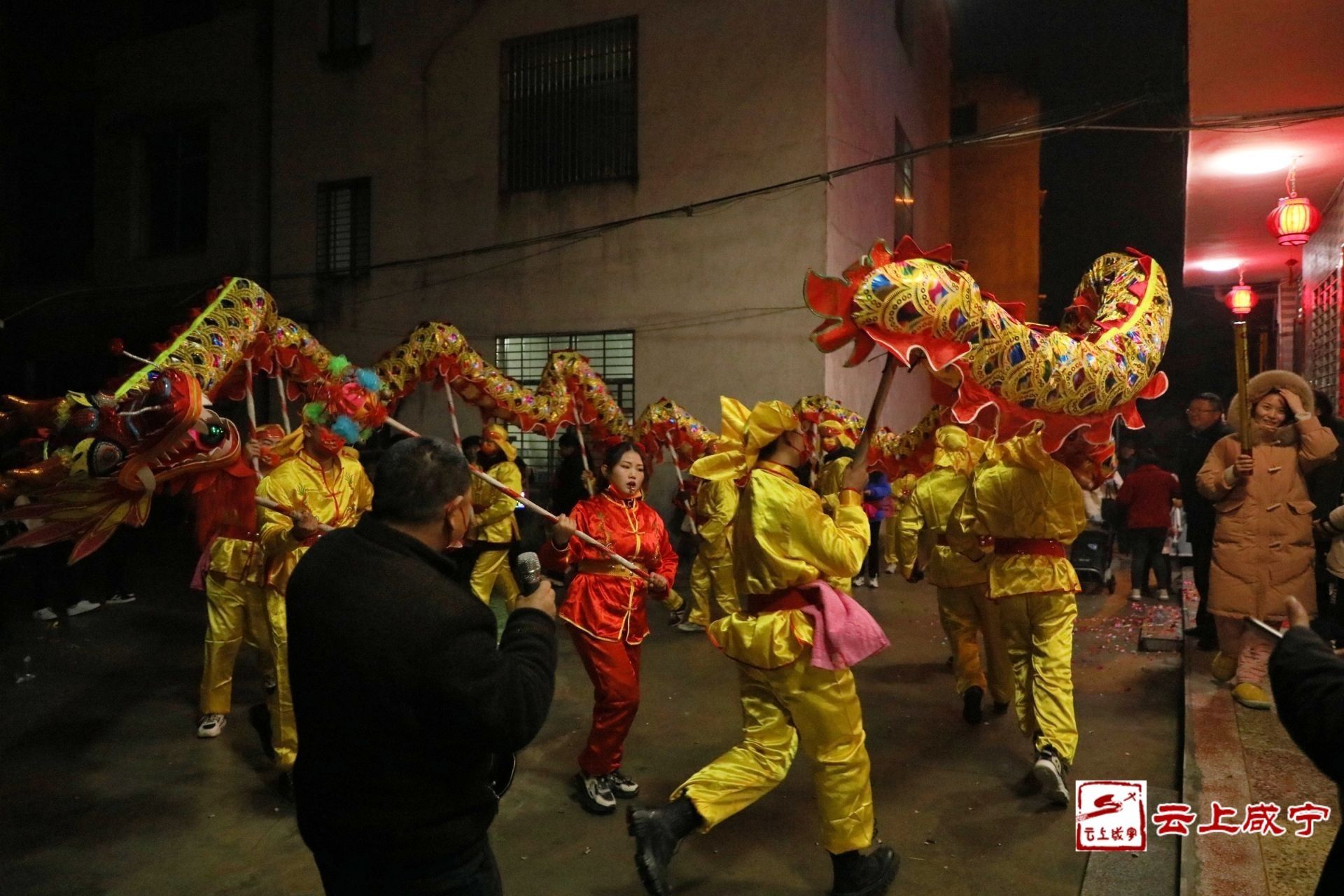 云上咸宁报道(记者 杨紫妮)1月31日,农历除夕。通城宝塔社区的袁女士一家翘首期盼,等着今年通城县舞龙队的龙灯从她家出行。