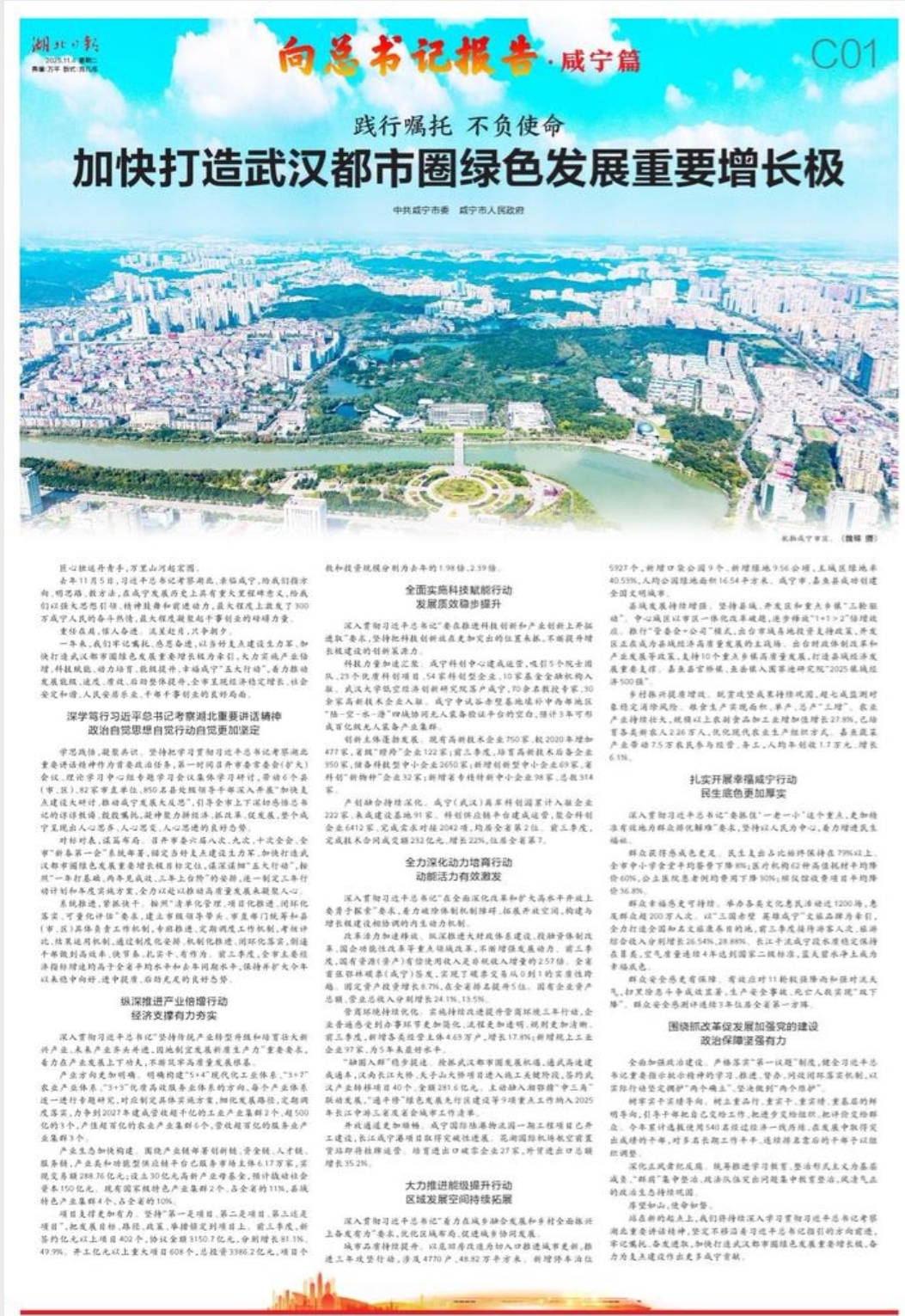站在新的起点上,我们将持续深入学习贯彻习近平总书记考察湖北重要讲话精神,坚定不移沿着习近平总书记指引的方向前进,牢记嘱托、奋发进取,加快打造武汉都市圈绿色发展重要增长极,奋力为支点建设作出更多咸宁贡献。