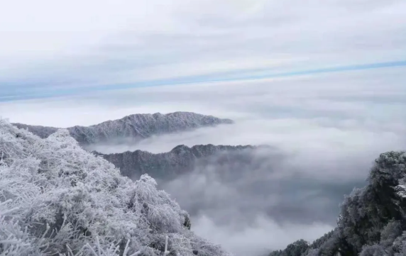 「雪后初晴」九宫山常会出现雾凇奇观。漫山遍野玉树银花,树枝上通体晶莹剔透,形成江南罕见的冰雪风光。