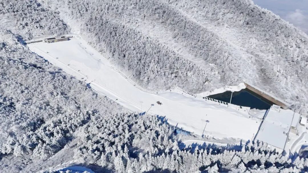 「九宫山滑雪场」位于海拔1559米的高山上,垂直落差100米,采用人造雪和天然雪相结合,适合开展大众滑雪和竞技滑雪。