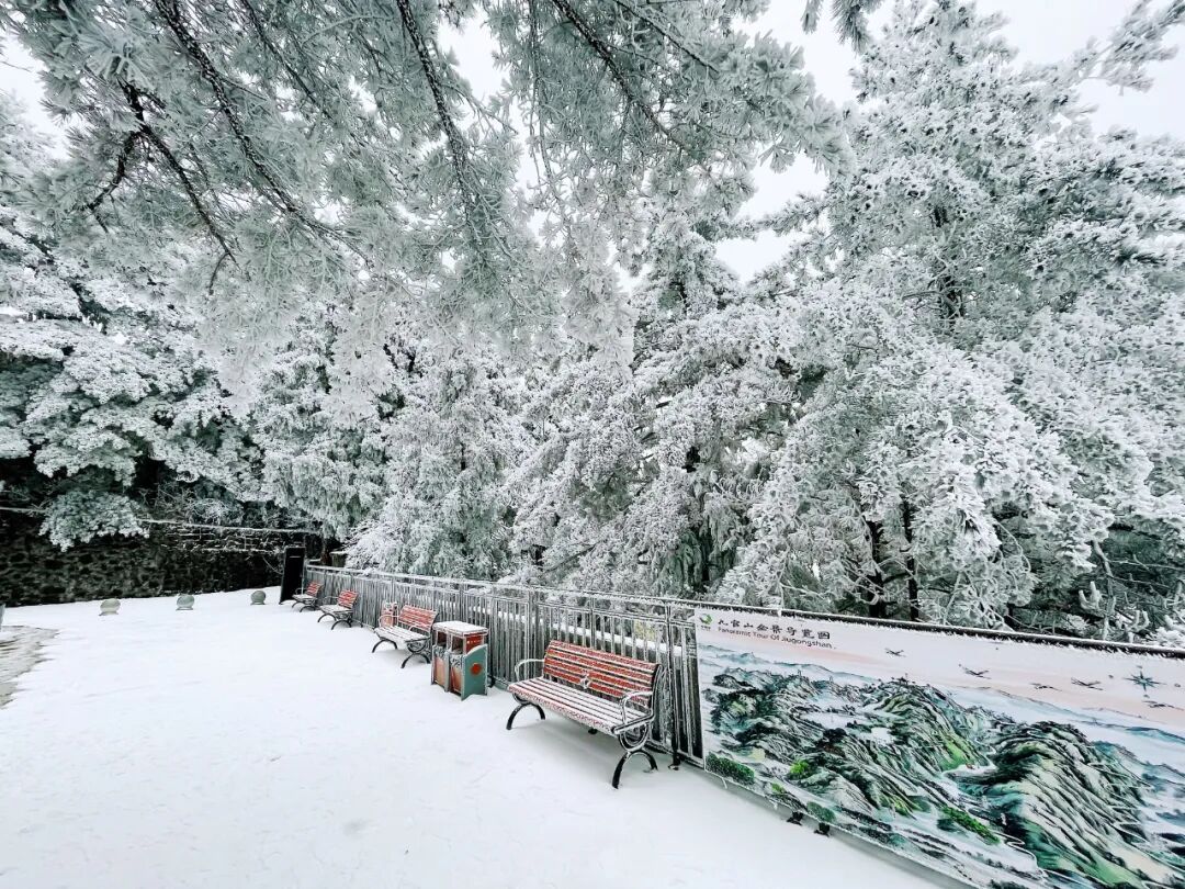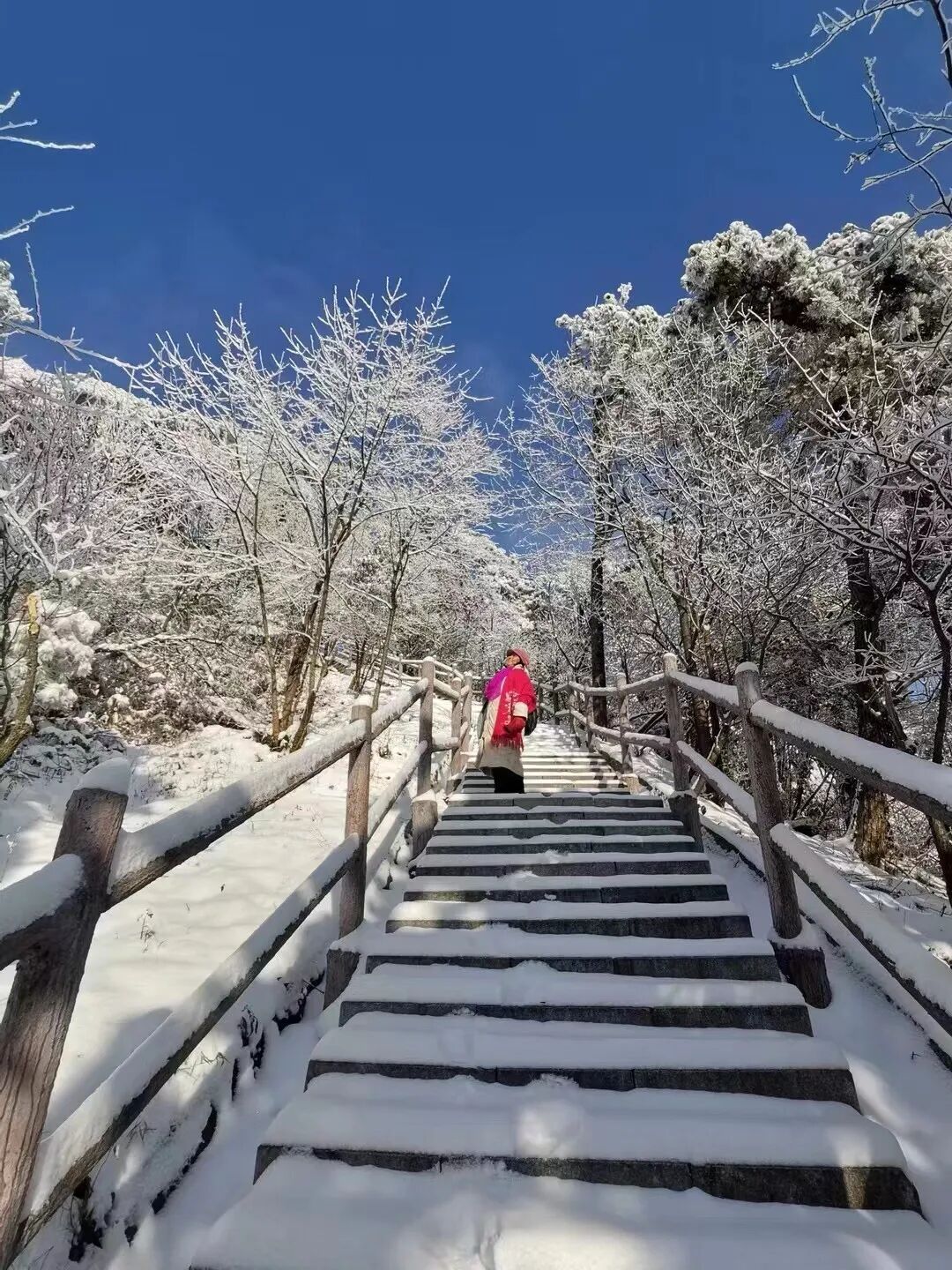 「冬日的九宫山」是一场视觉的盛宴。当雪花纷纷扬扬洒下,群山披上银装,天地间一片洁白。