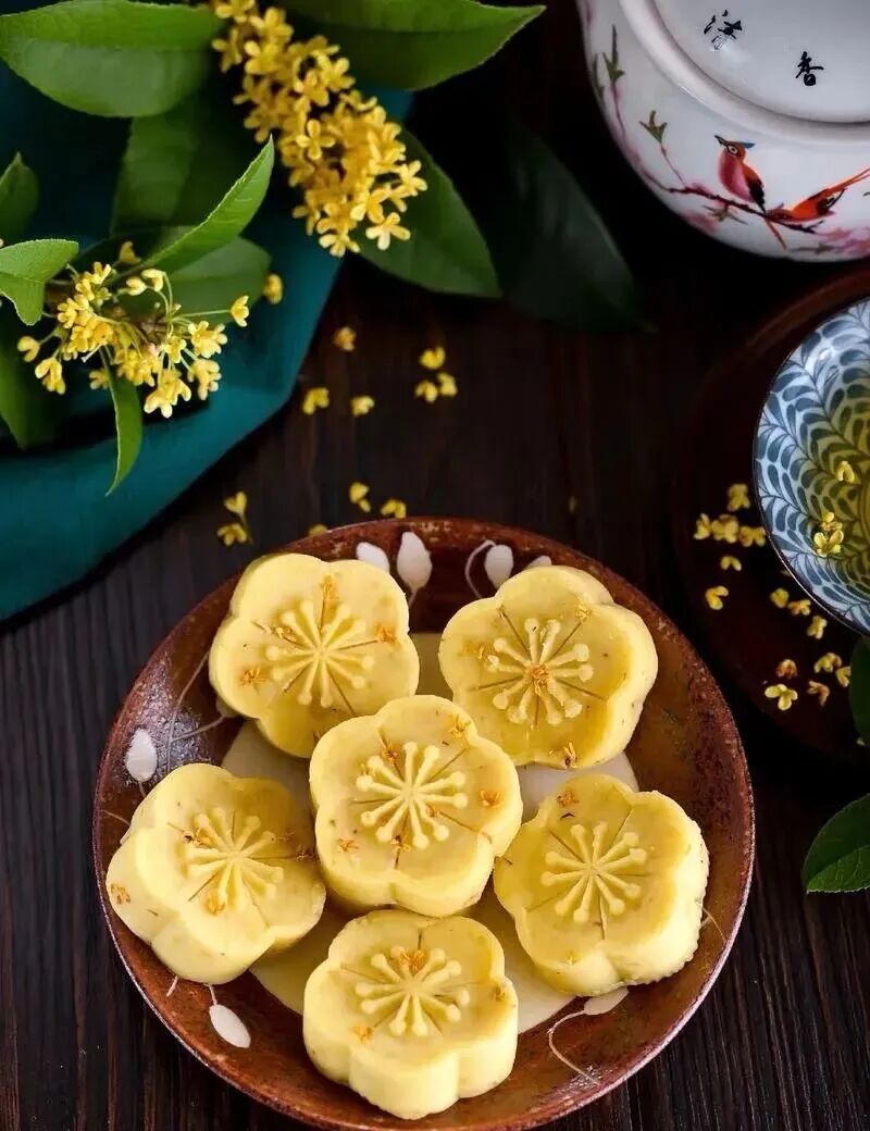 “中华桂花之乡”的甜蜜馈赠。咸宁桂花糕是湖北省非物质文化遗产,源自明清“打桂花”“制桂花”的古老习俗。其以咸宁特有金桂、银桂为魂,糯米粉为骨,经多道传统工艺精制而成。成品白中透黄,点缀金黄花瓣;口感清甜软糯,入口即化,香气沁人心脾。