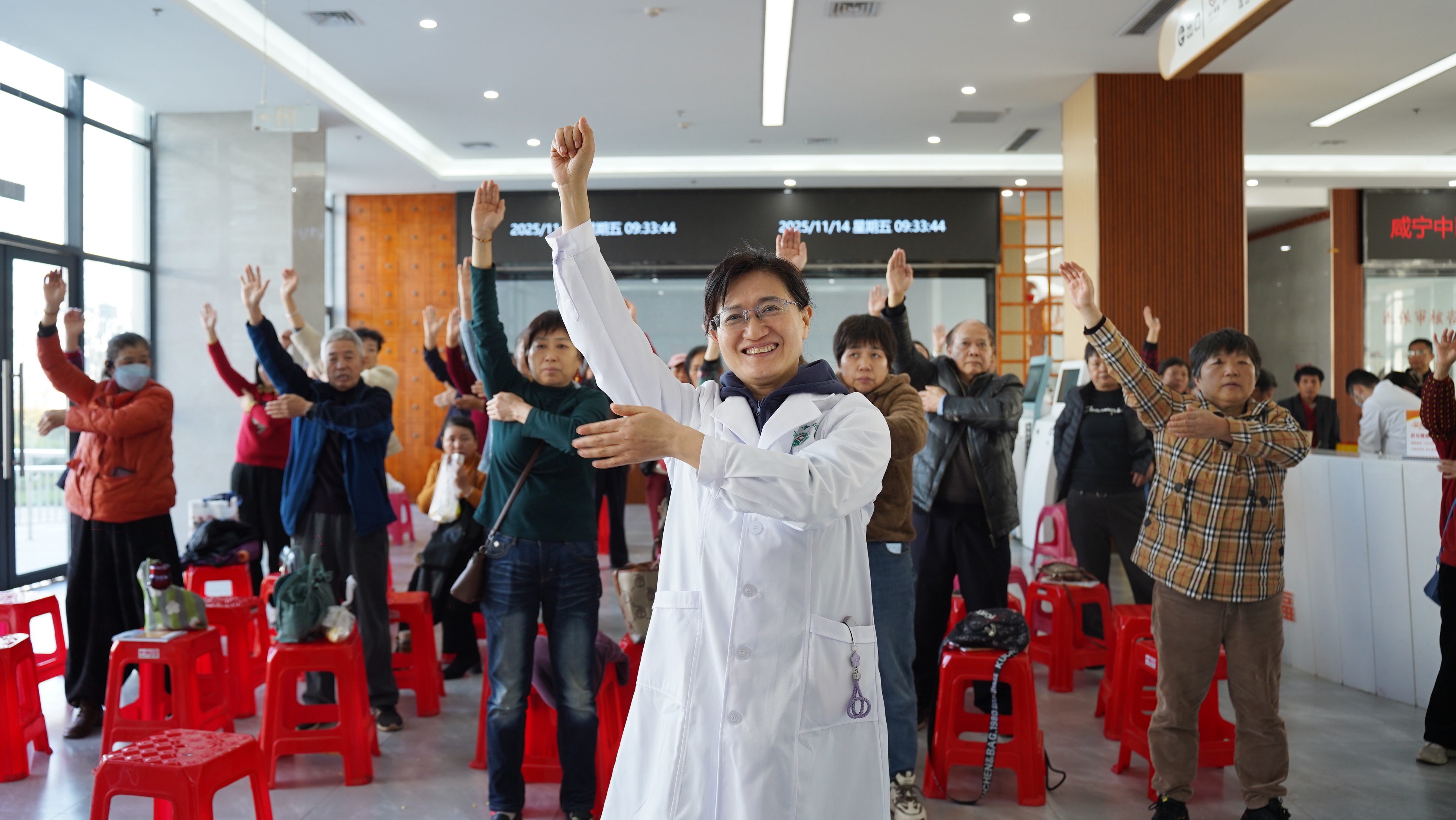 活动现场还开展了《糖尿病饮食疗法》知识讲座和“糖尿病十问十答”互动环节。一位患病多年的患者李阿姨表示:“专家讲解的饮食原则和中医食疗方法很实用,纠正了我过去的很多误区。”在养生操环节,医护人员带领大家学习“八虚拍打疗法”,简单易学的动作引得全场积极参与。