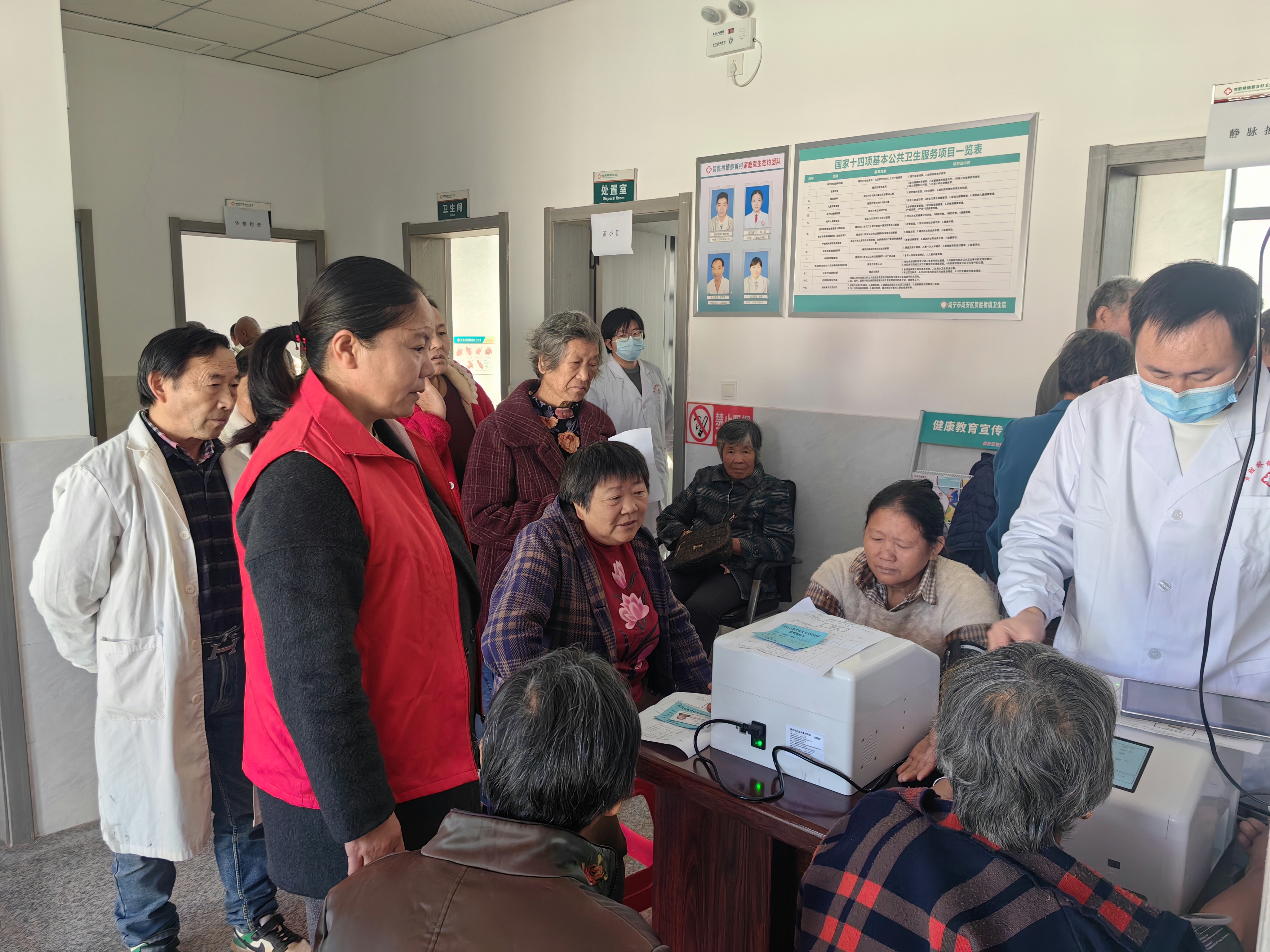 筛查现场秩序井然,村民携带病历资料有序排队等候。来自市中心医院心血管科的专家团队,为村民提供详细问诊、血压心率测量、心电图检测及血脂血糖化验等多项检查,并针对不同情况现场提出个性化健康建议。