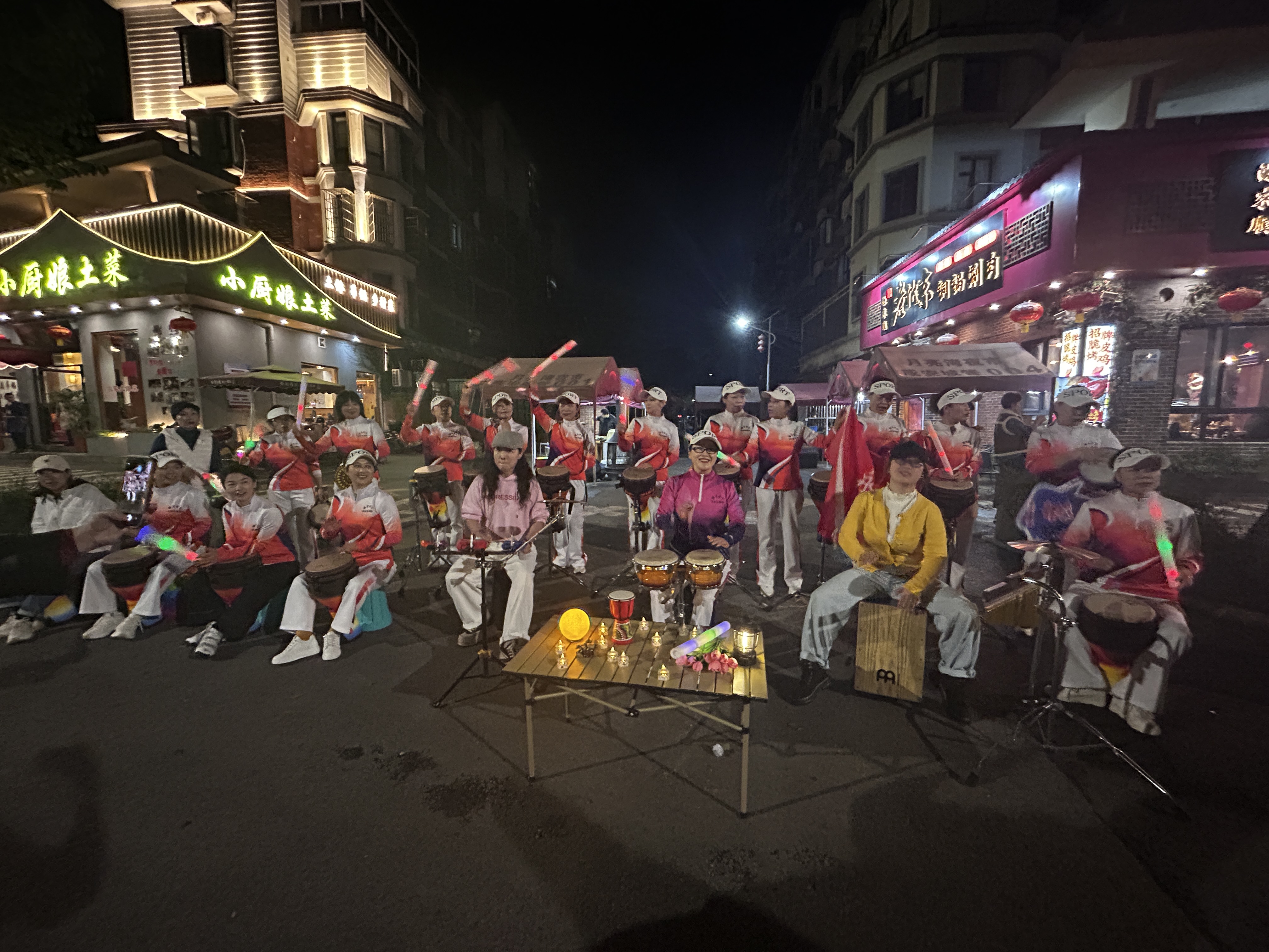 晚18:30,巡演在充满激情的非洲鼓声中拉开帷幕。来自本土艺术团的鼓手们身着特色服饰,以昂扬向上的节奏点燃全场热情。随着巡游队伍沿街区缓缓行进,围观群众纷纷举起手机记录精彩瞬间。孩子们跟着节奏摇摆,老年人驻足含笑观看,鼓点如心跳般串联起每个人的情绪,沿街商铺的暖黄灯光与表演者手中的彩绘鼓面相映成趣,勾勒出冬日夜晚最生动的风景线。紧随其后的军乐队以嘹亮号角与整齐步伐将气氛推向高潮。《人民军队忠于党》的经典旋律引发共鸣。市民邹先生赞叹:“每个地方我都观摩了一下,各有特色,既展现了咸宁人的文化生活,也提升了城市品味。”