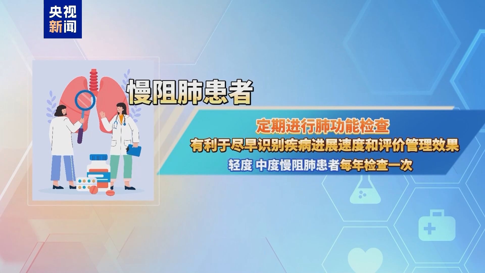 专家表示,肺功能检查能够反映肺部呼气和换气功能的受损程度。慢阻肺患者定期进行肺功能检查,有利于尽早识别疾病进展速度和评价管理效果,轻度、中度慢阻肺患者每年检查一次,重度以上患者需每6个月检查一次。在治疗方面,主要采用药物和手术两种。