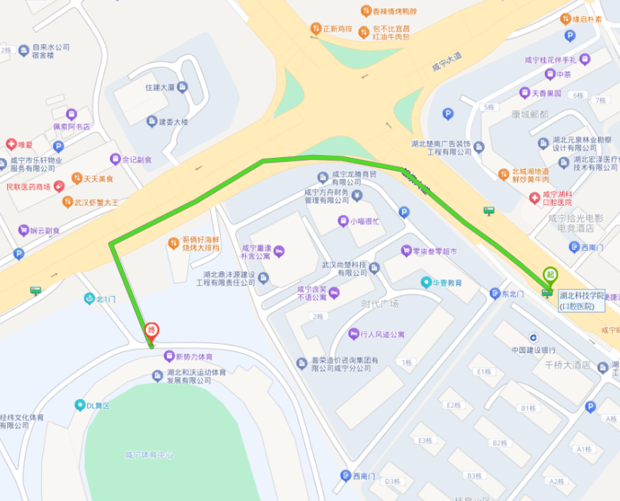 市民散场步行约420米抵达湖北科技学院(口腔医院)站台。