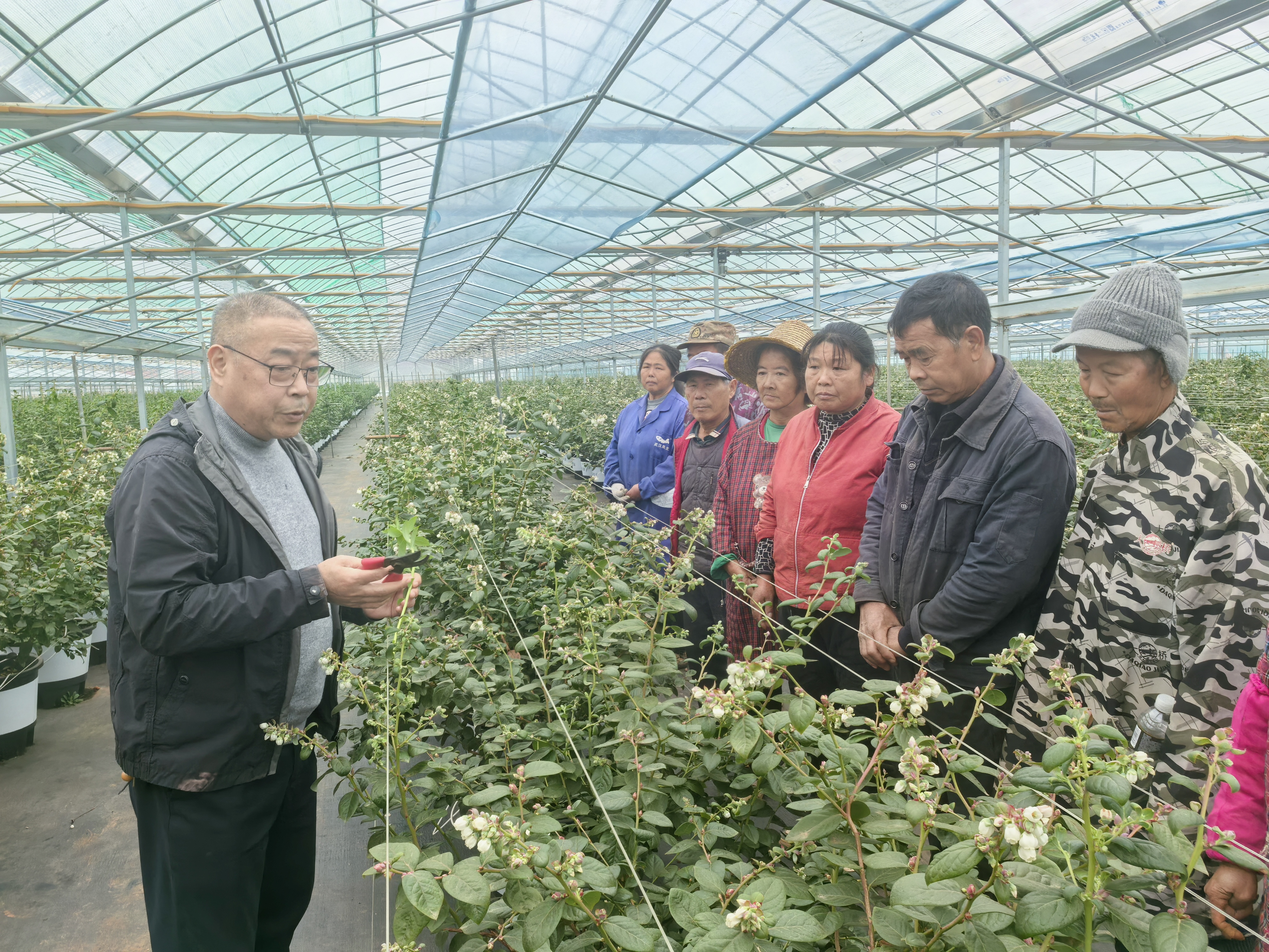 在向阳湖科技农业示范区,区农业农村局专家组围绕“加快农业农村现代化,扎实推进乡村全面振兴”的宏伟蓝图,走进国桥农业蓝莓种植基地,手把手传授剪枝、施肥、病虫害防治等技术要领,把全会精神和农技知识送到田间地头。