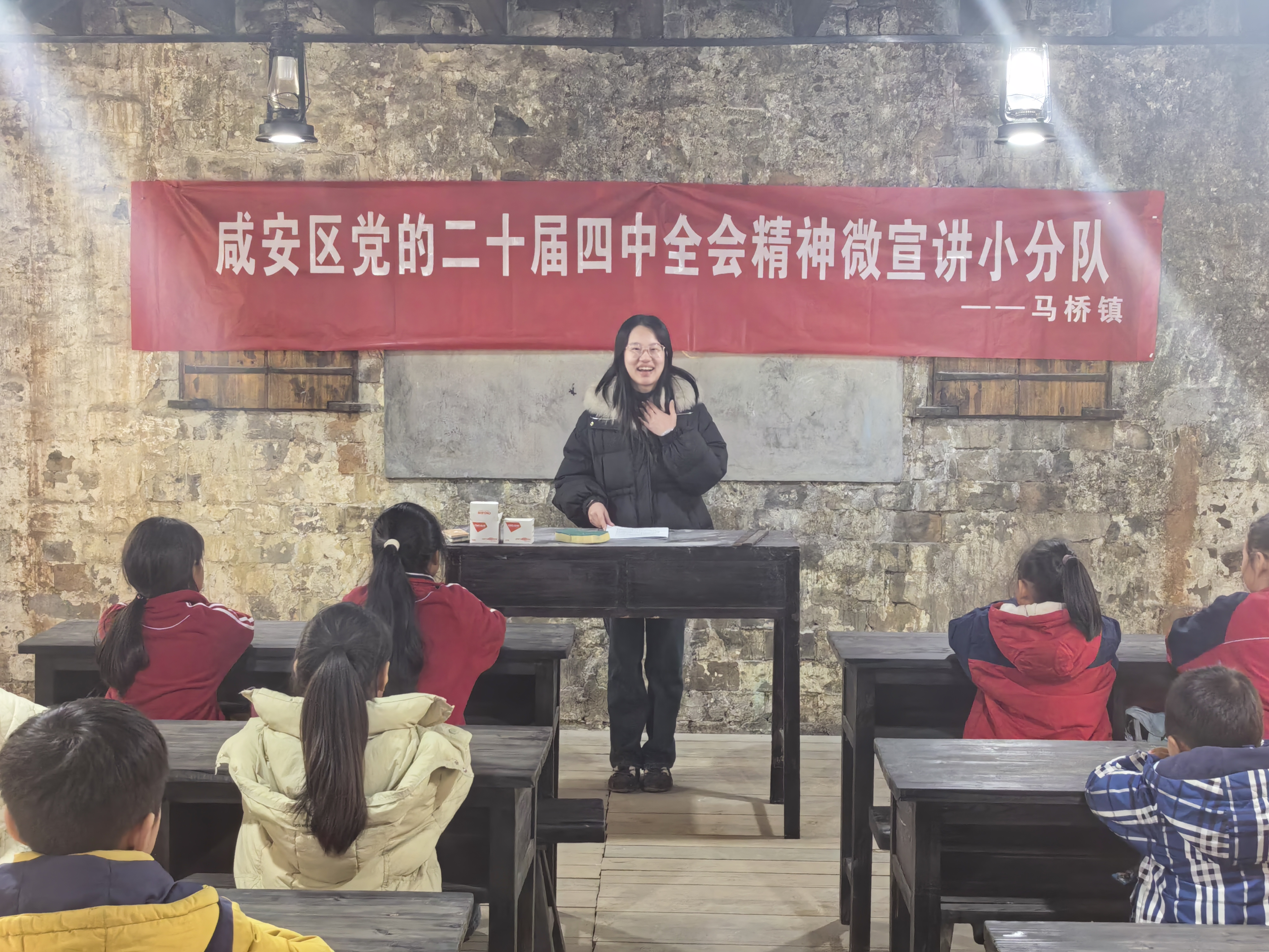 在马桥小学,宣讲员以王家畈学堂悠久历史为切入点,用生动活泼的语言,将全会提出的“激发全民族文化创新创造活力,繁荣发展社会主义文化”等重要论述与青少年素质教育相结合,带领孩子们共读经典书目、讲述红色故事,让文化自信的种子在青少年心中生根发芽。