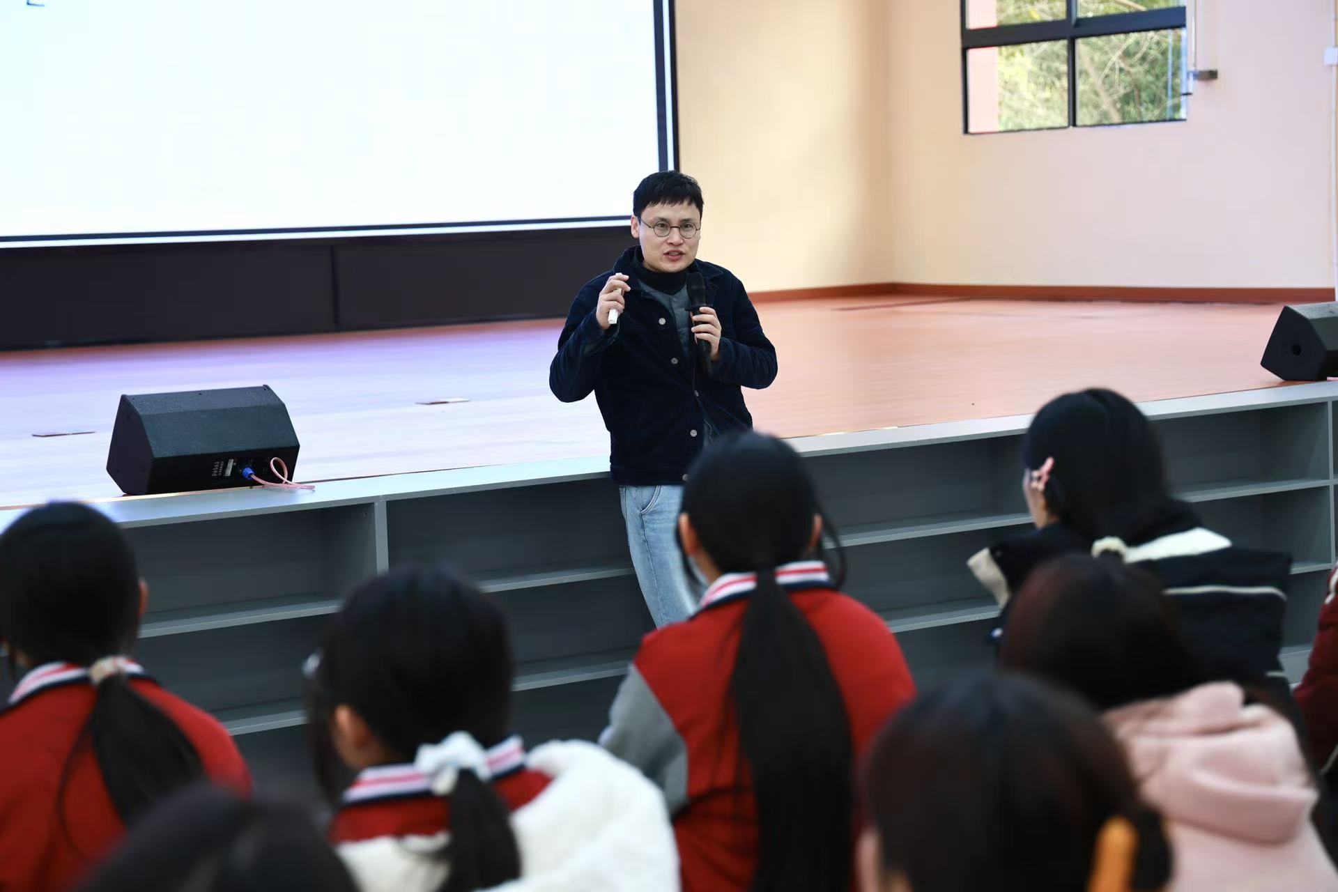 “我和你们一样,在山野间长大。”徐腾的声音在安静的图书馆内格外清晰,伴着投影仪上闪过的一张张照片,一幅结合自身求学经历、名为“外面世界”的精彩画卷,在孩子们眼中徐徐展开,这让孩子们的身体不由自主地前倾。“千万不要囿于某个标签,你们的想象力应该像大山一样连绵不绝。”