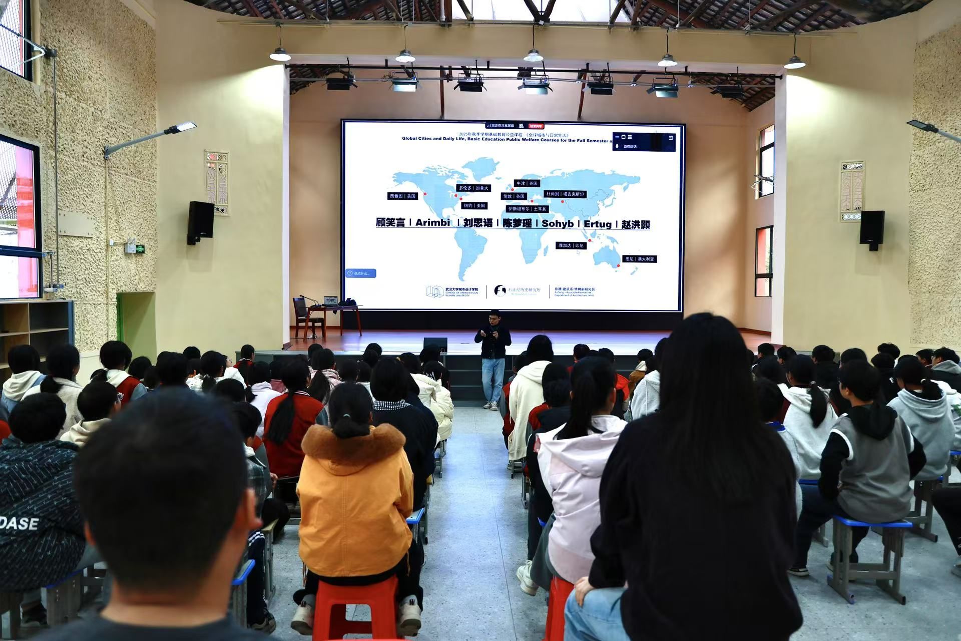 当天,大幕乡“飞跃大幕山计划”基础教育公益课程正式开课。来自武汉大学城市设计学院的副研究员徐腾和远在澳洲交换的上海交通大学硕士顾笑言,分别通过现场宣讲和远程分享,为山乡孩子搭建起一座连接全球的“信息桥梁”。