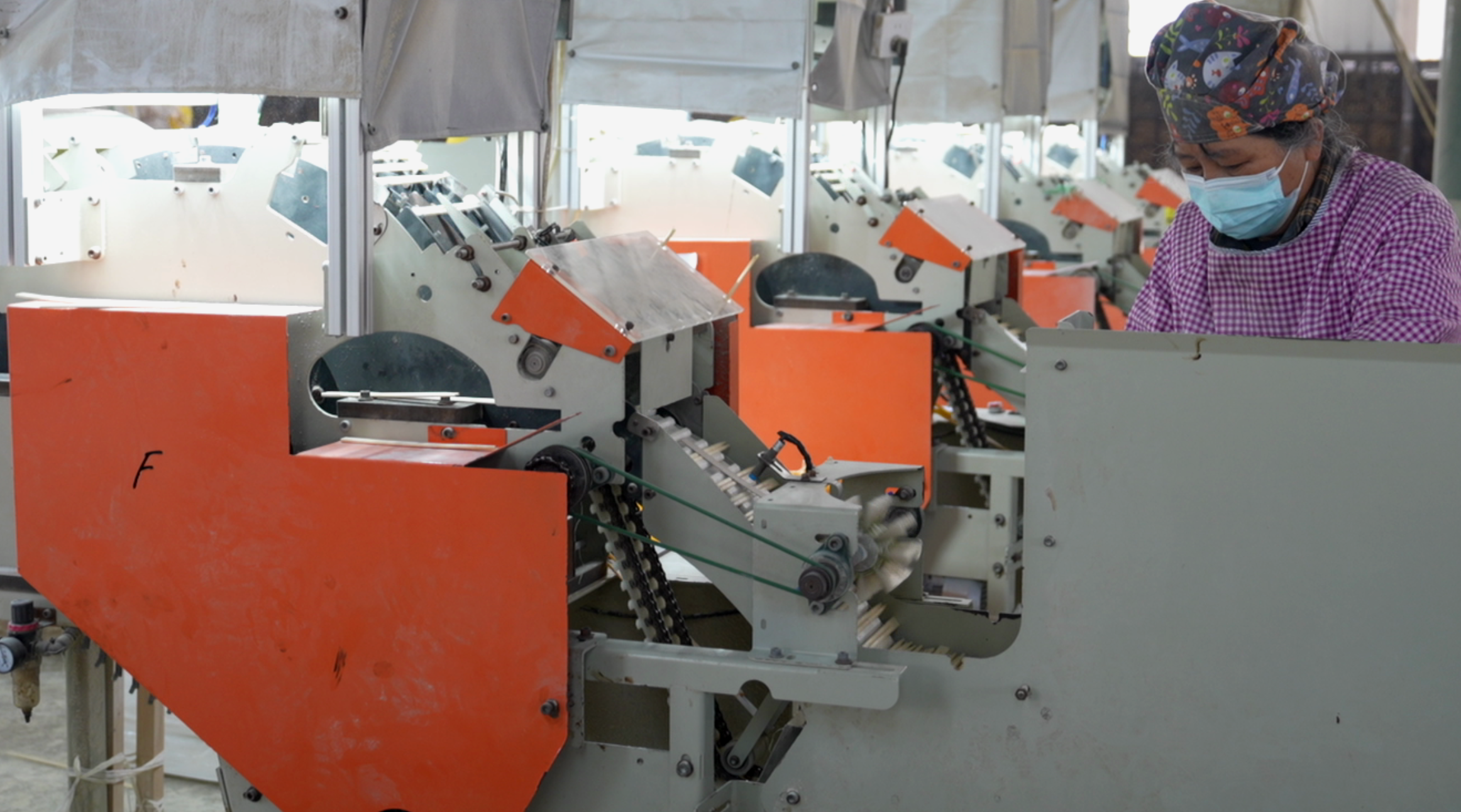 在镇政府支持下,企业于2024年全面转型,建设5000多平方米厂房,分区加工竹筷、竹签等。2025年10月,公司新增竹炭生产线,将以往被丢弃的竹尾、竹屑等废料全部炭化处理,真正实现了“一根竹子无废料”。