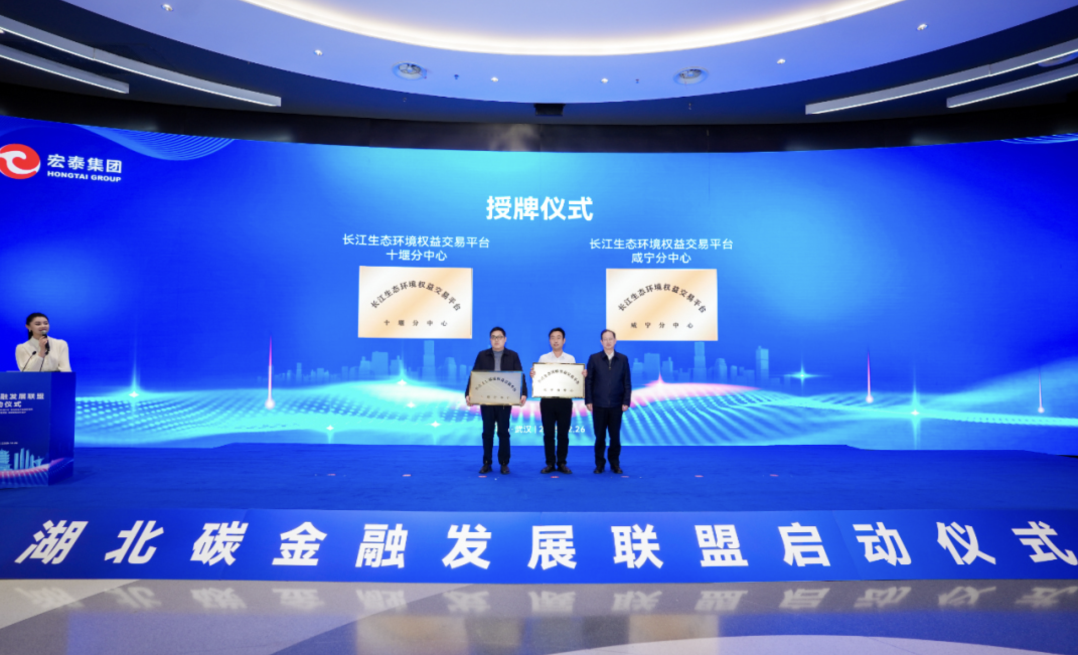 云上咸宁报道(记者 杨文 通讯员 周旋)12月26日上午,在湖北省国资委、省地方金融管理局、中国人民银行湖北省分行及省生态环境厅的联合指导与推动下,由湖北宏泰集团牵头组建的“湖北碳金融发展联盟”正式宣告成立。成立大会上,省生态环境厅二级巡视员田啟代表联盟及省级平台,向咸宁城发集团旗下绿色产业发展投资有限公司授予“长江生态环境权益交易平台咸宁分中心”牌匾,绿产公司总经理吴成代表公司接受授牌。