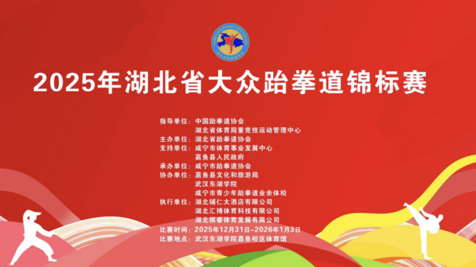 云上咸宁报道(记者 李欣)12月28日,记者从咸宁市跆拳道协会了解到,备受瞩目的2025年湖北省大众跆拳道锦标赛将于2025年12月31日至2026年1月3日在武汉东湖学院嘉鱼校区体育馆拉开帷幕。