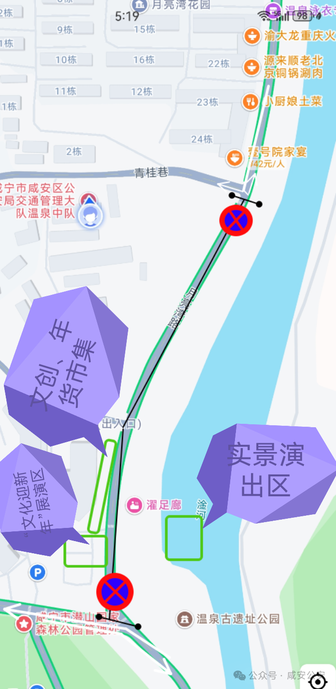 (云上咸宁编辑报道)12月30日,咸宁市公安局咸安区分局交通管理大队发布关于“泉暖月亮湾 文化迎新年”活动期间实施交通管制的通告: