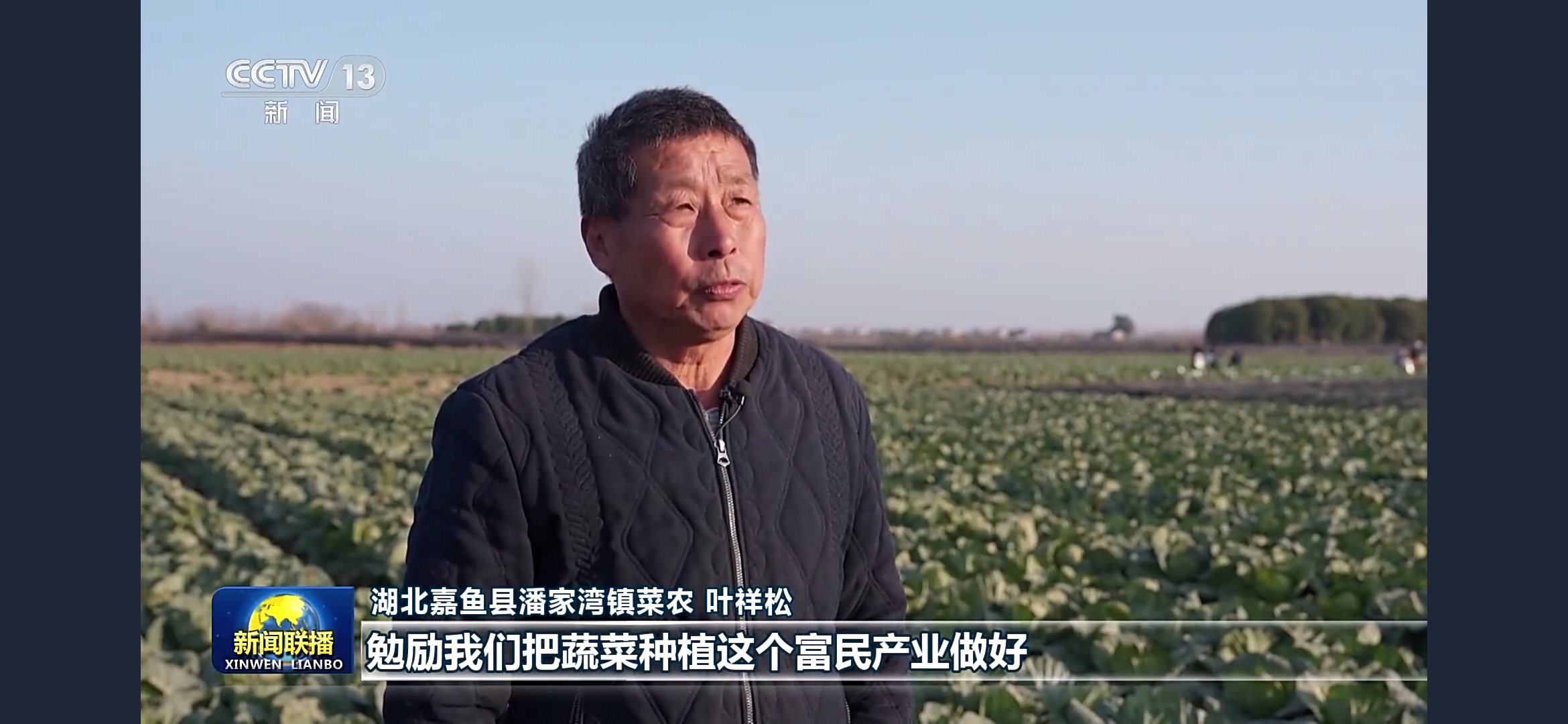 云上咸宁报道(记者 罗世喜 李欣)1月10日晚,央视《新闻联播》播出头条报道《奋发进取 绘就乡村振兴新图景》,对咸宁嘉鱼坚持走科技之路、质量之路、品牌之路,做大做强蔬菜富民产业,推动产业高质量发展的经验做法进行了关注。