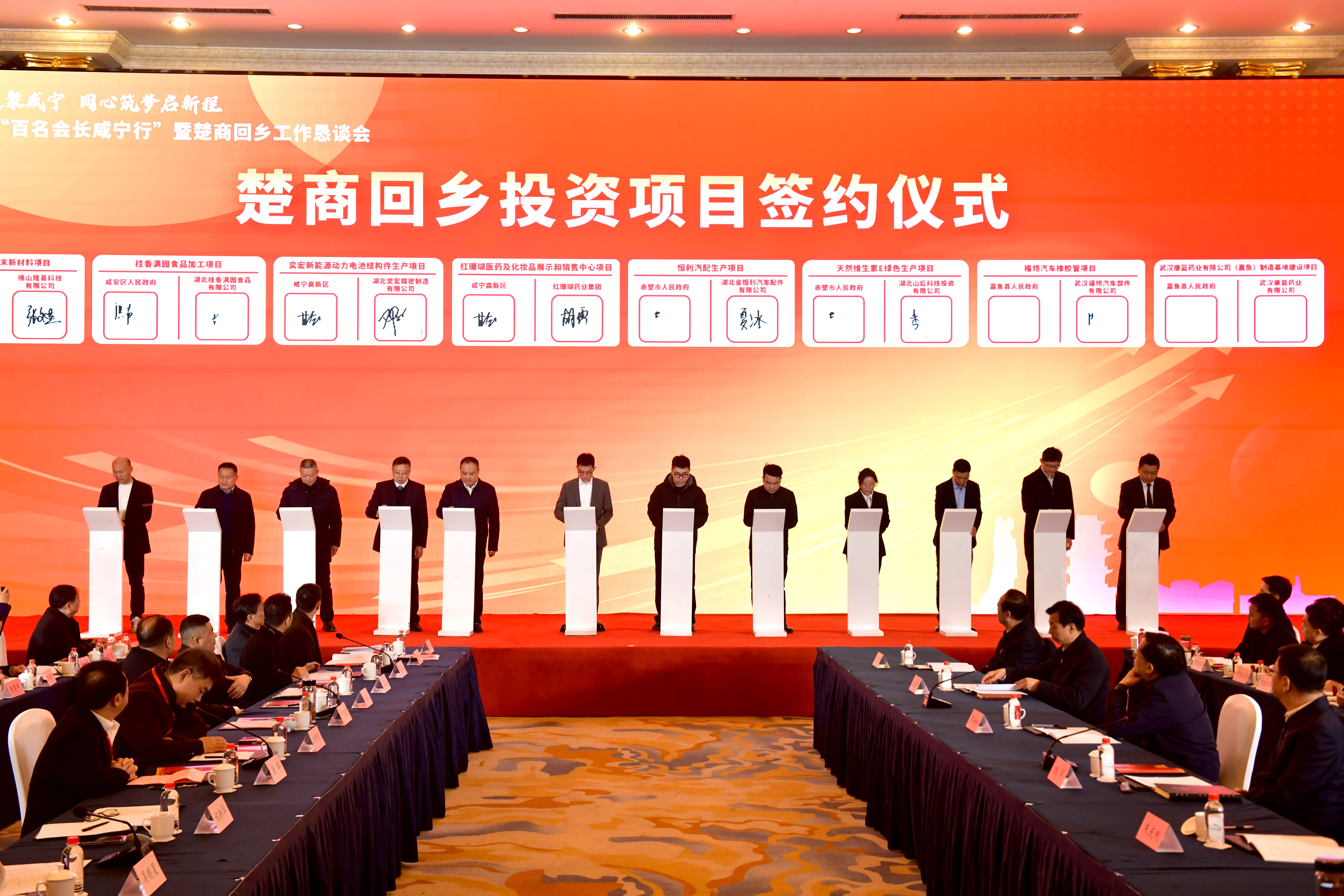 现场还举行了楚商回乡投资项目签约仪式和2026年第一期“人才会客厅”活动。会前,与会嘉宾深入咸宁高新区开展了考察活动。