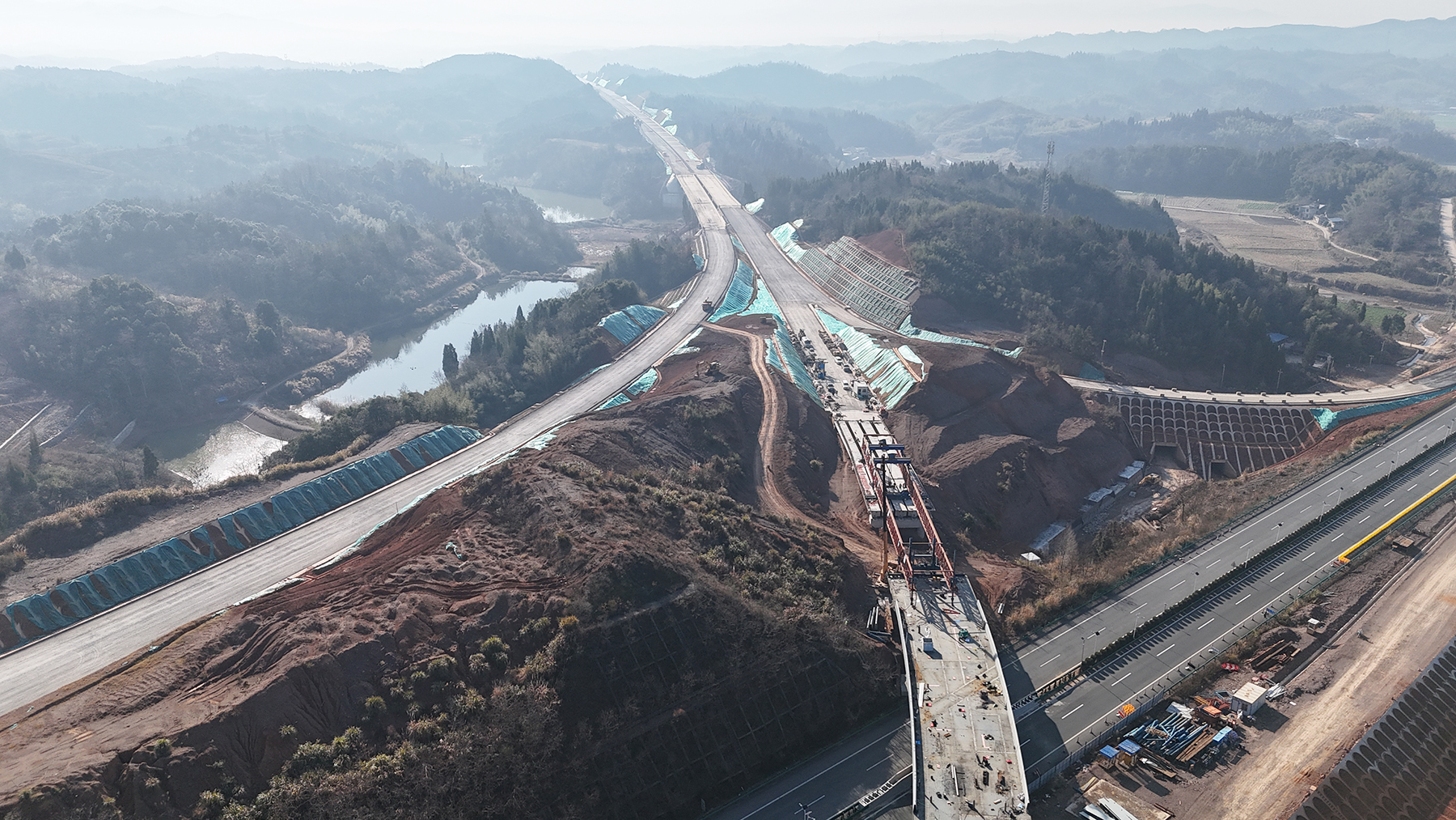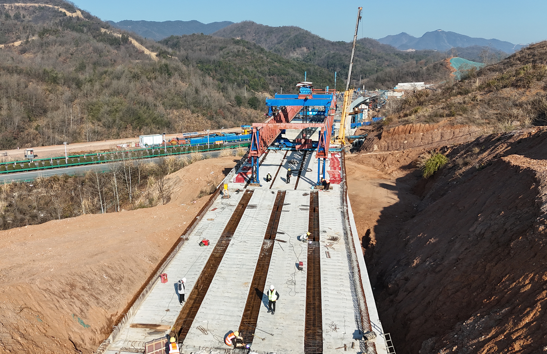 “当前正在施工的是崇阳西互通范围内最后一座上跨武深高速的匝道桥,目前钢箱梁安装和预制箱梁架设同步进行,预计1月底完成合龙及桥面附属设施施工,届时通修高速崇阳段将全面贯通。”中建三局通修高速公路第一标段项目经理部综合工长吴江介绍。