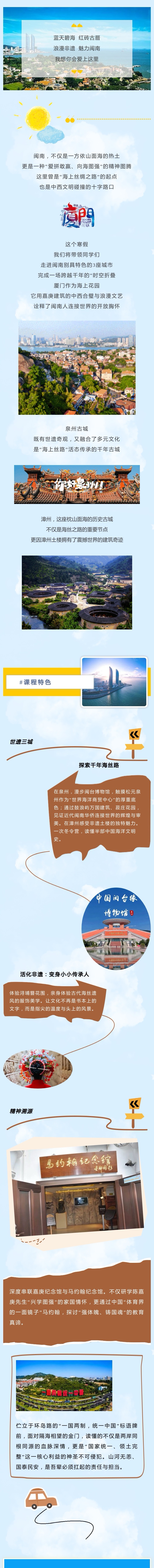 (包含往返高铁费用、住宿(厦门4钻亨龙花园酒店或同级别酒店、餐饮(正餐40元/人餐标)、厦门泉州漳州全程空调大巴车、2名冬令营导师、保险、所有冬令营景点门票、冬令营手册,非遗体验物料费等。