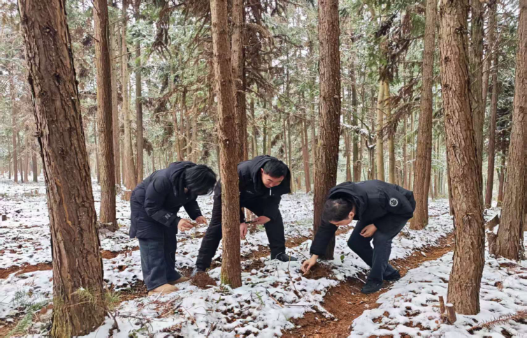 团队深入田间地头,拨开积雪与覆盖物,现场检查黄精根茎状况、土壤墒情,现场评估冻害潜在风险。针对部分地块覆盖物单薄、排水沟不畅等问题,团队成员和相关负责人深入沟通,根据不同海拔、不同种植模式和黄精生长状况,提出针对性防护建议。