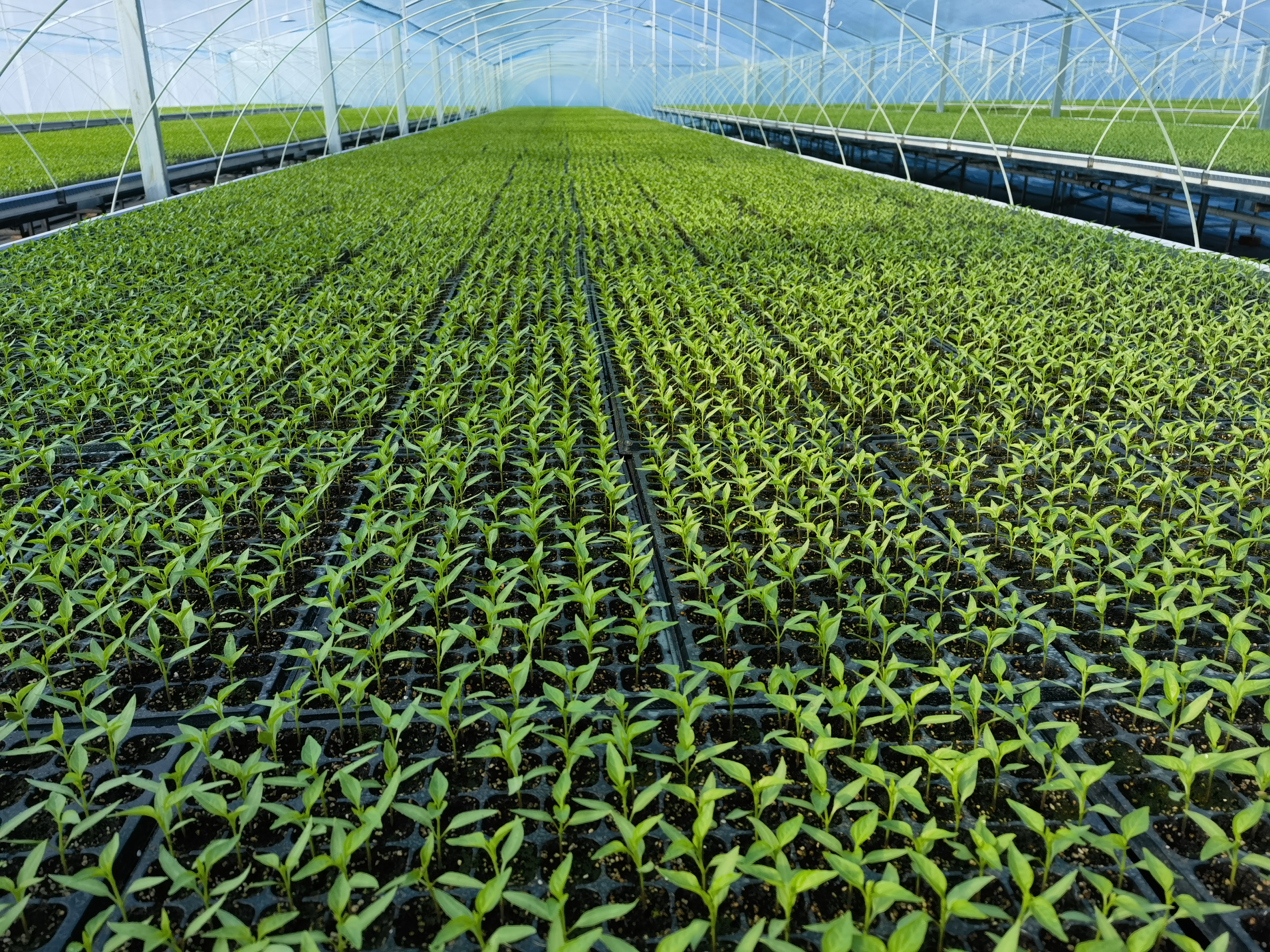 “盘活存量”的同时,“做大增量”也在同步推进。现代化的潮汐育苗大棚里,嫩绿的菜苗整齐排列,生机盎然。