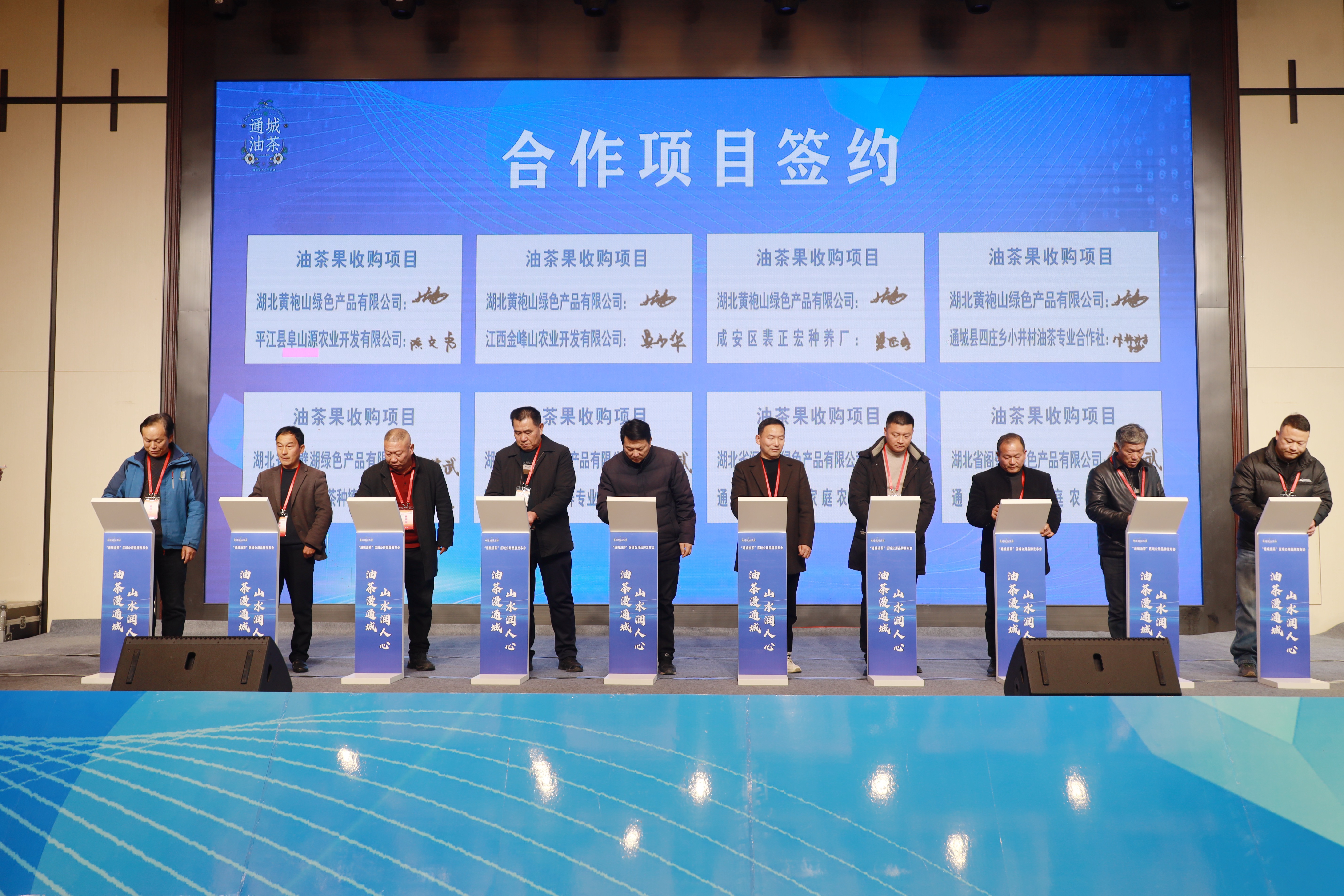 在签约环节,通城县两家重点龙头企业——湖北黄袍山绿色产品有限公司与湖北省阁壁湖绿色产品有限公司,分别与湖南省平江县、江西省修水县及湖北省内多家专业合作社、销售企业签署了油茶果收购协议与茶油销售协议,初步构建起覆盖种植、加工、销售的跨区域产业链协作网络。