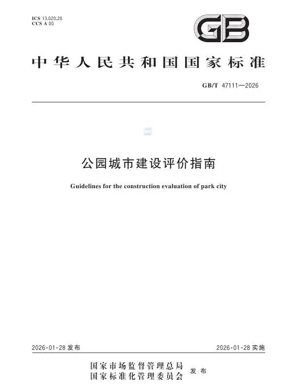 云上咸宁报道(通讯员 陈向斌)近日,国家市场监督管理总局、国家标准化管理委员会联合发布2026年第4号国家标准公告,由咸宁市人民政府联合成都市公园城市建设发展研究院、中国标准化研究院等单位共同研制的《公园城市建设评价指南》(GB/T 47111-2026)正式发布实施。这是我国公园城市建设领域首部国家级标准,标志着该领域从地方探索、理念引领迈入全国统一规范、科学评价的新阶段,为城市高质量发展提供了可复制、可推广的标准化解决方案。