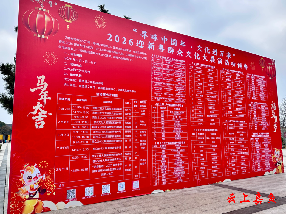 云上咸宁报道(嘉鱼县融媒体中心记者 祁声坤)2月7日,嘉鱼县二乔公园内,人声鼎沸,红火热闹。2026年“我们的中国梦——文化进万家”荆楚“红色文艺轻骑兵”全省启动仪式暨惠民演出在嘉鱼隆重举行之际,台下,一场以“乐在湖北‘马’上有喜·悦见咸宁——回嘉赶大集”为主题的盛大年货节同步火热开场。这不仅是一场琳琅满目的商品购销会,更是一场融合了购年货、品年味、赏年俗、享年趣的综合性新春嘉年华。142家参展商户、310多位参与者的热情,在这里交织汇聚,绘就了一幅生动鲜活的“嘉鱼年景图”。