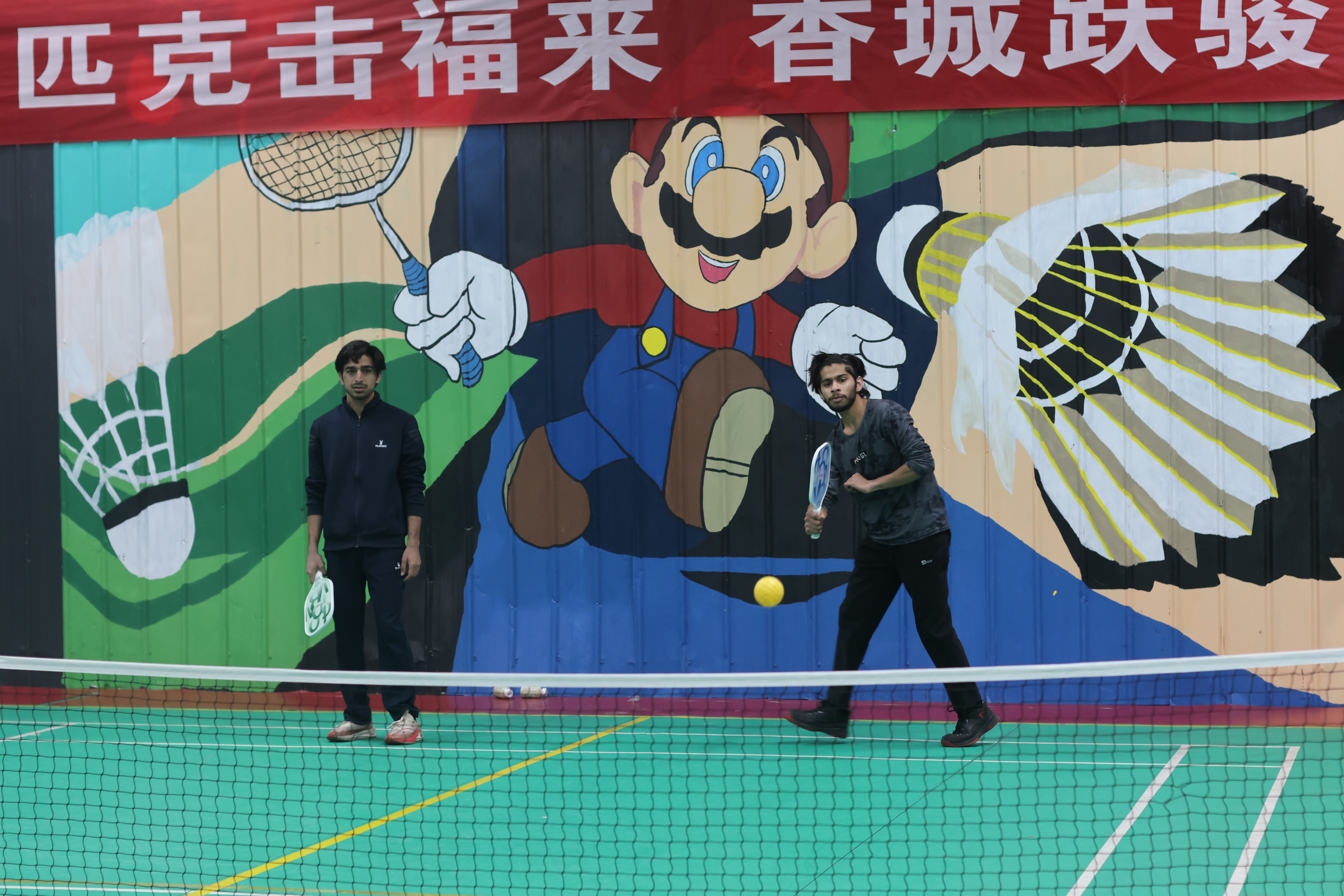 友谊赛设置男子双打、女子双打、混合双打等多个项目,中外选手隔网相对,快节奏的截击与精准的吊球交替上演,引得阵阵喝彩。