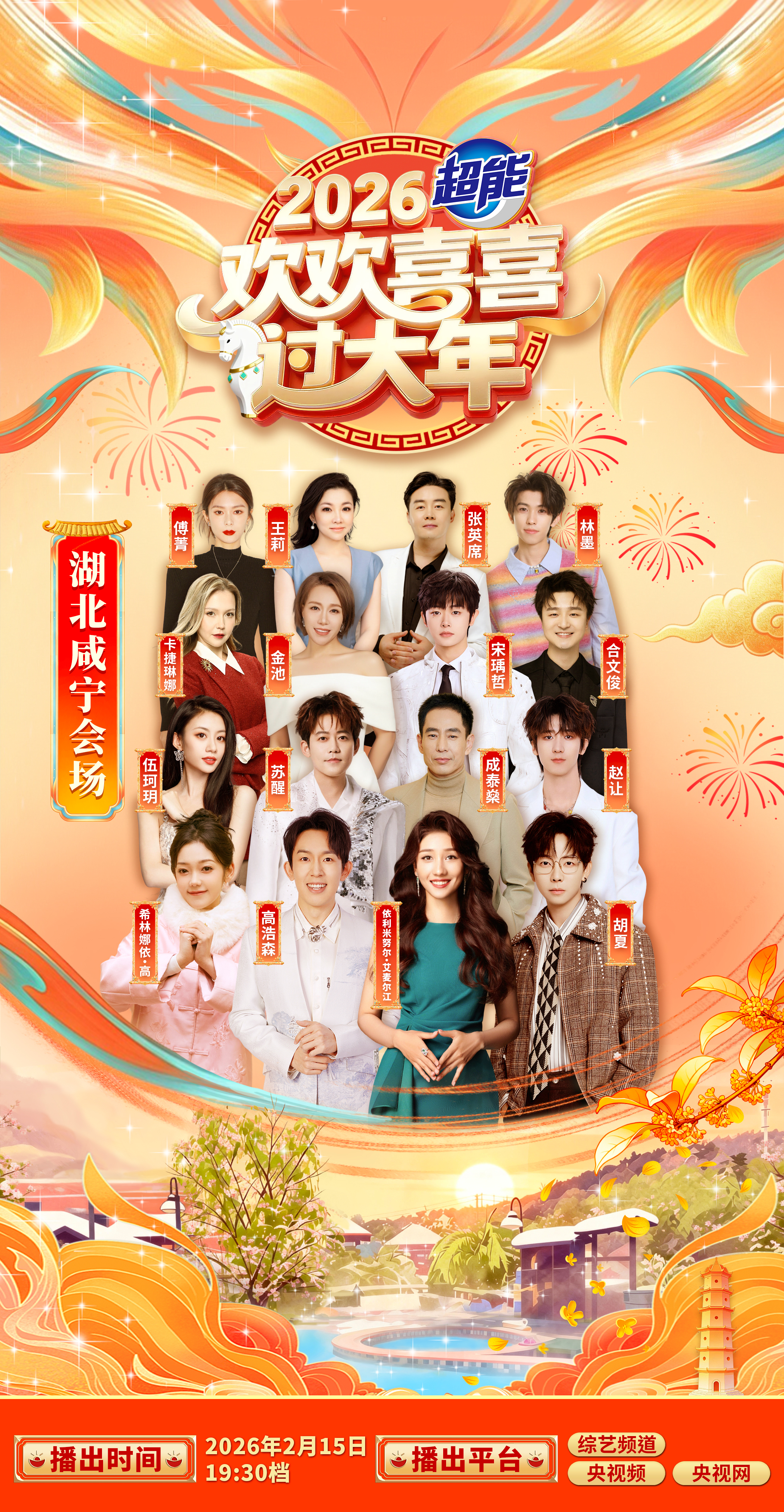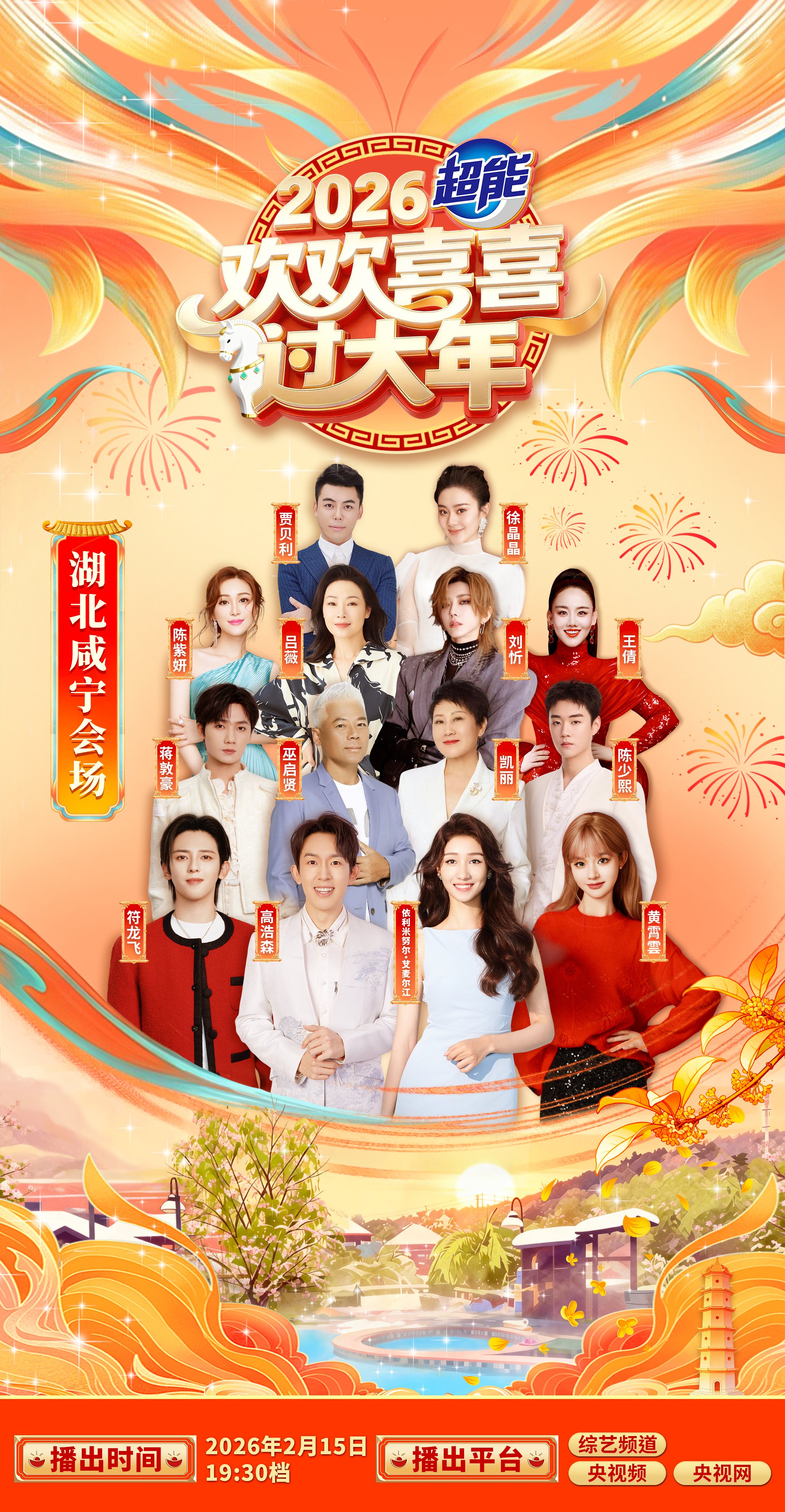 云上咸宁报道(记者 李欣)2月14日,记者从中央广播电视总台2026年春节特别节目《欢欢喜喜过大年》咸宁场活动组委会办公室了解到,节目将于2月15日(腊月二十八)19:30,在中央电视台综艺频道(CCTV-3)正式播出,节目时长45分钟,节目视频也将在央视频APP、央视网等平台同步推出。