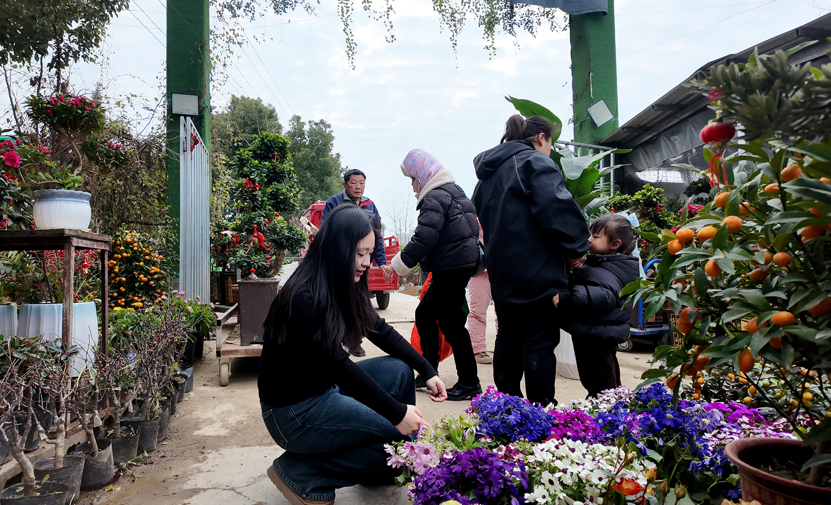 云上咸宁报道(崇阳县融媒体中心记者 沈庭萱)春节的脚步日益临近,崇阳县的街头巷尾年味渐浓。2月14日,记者走访天城镇多家花卉门店看到,各色鲜花绿植竞相绽放,姹紫嫣红的花卉与翠绿挺拔的绿植相映成趣,不少市民趁着晴好天气前来挑选心仪的花卉,将新春的祝福与生机带回家。
