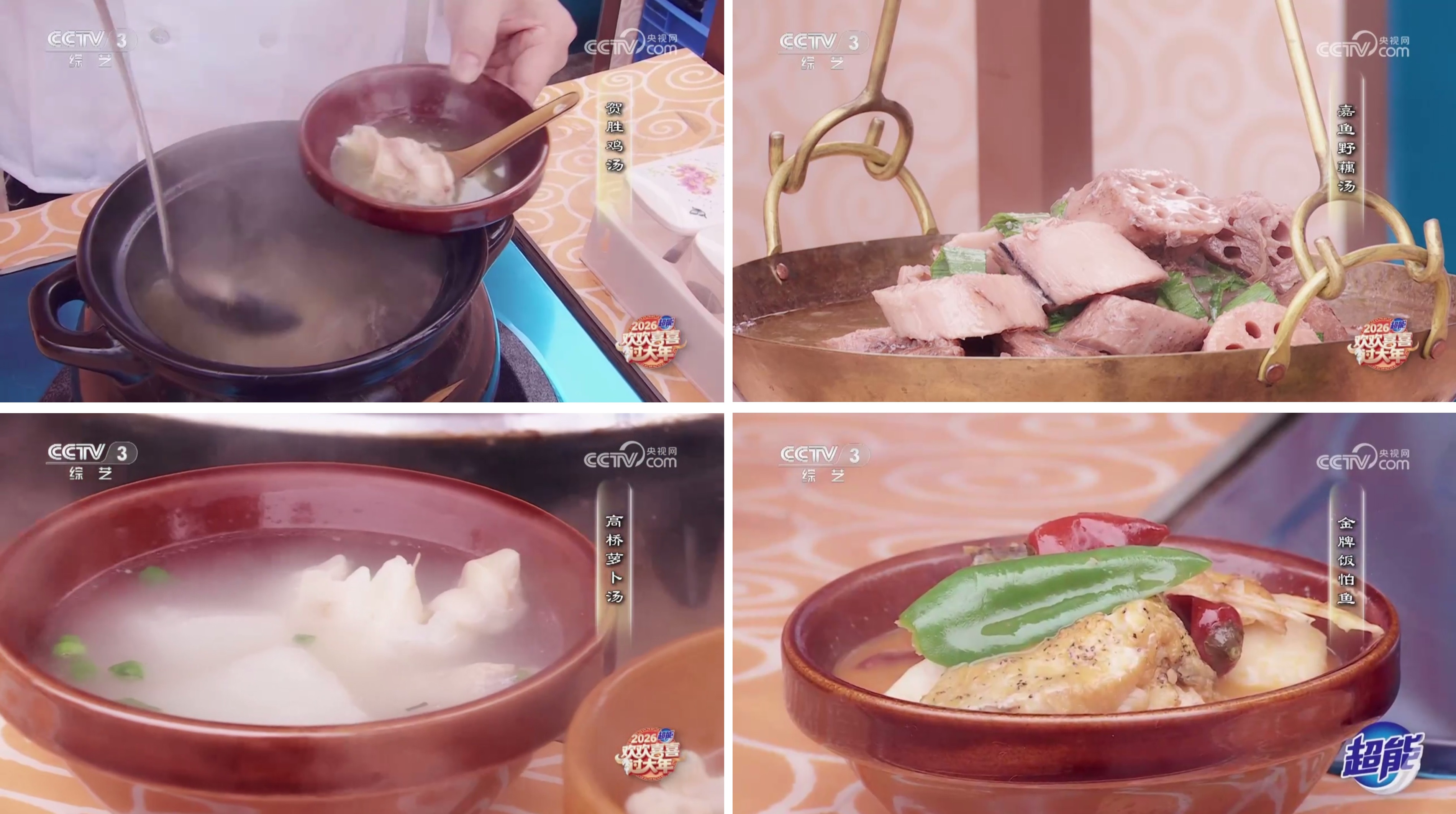 节目中,咸宁市融媒体中心主持人游燕带领演员合文俊和歌手卡捷琳娜·凯丽来到美食集市打卡,现场体验了贺胜桥鸡汤、嘉鱼野藕汤、高桥萝卜汤等咸宁特色美食。