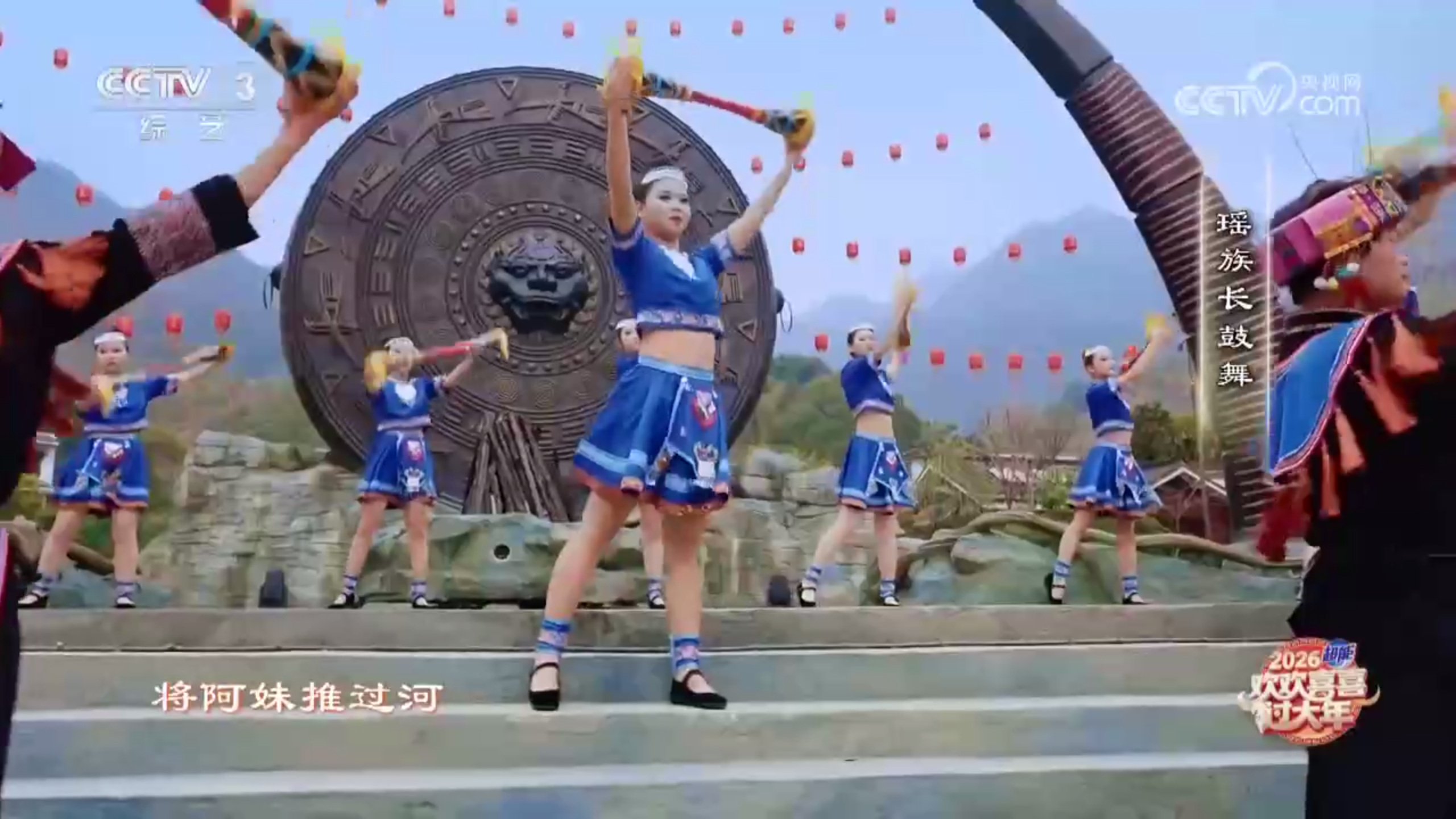 女歌唱家陈紫妍、王倩共同带来了特色民族歌曲《龙船调》《瑶族舞曲》,表演中,通城拍打舞、瑶族长鼓舞向全国观众展示了咸宁瑶族文化的别样风情。