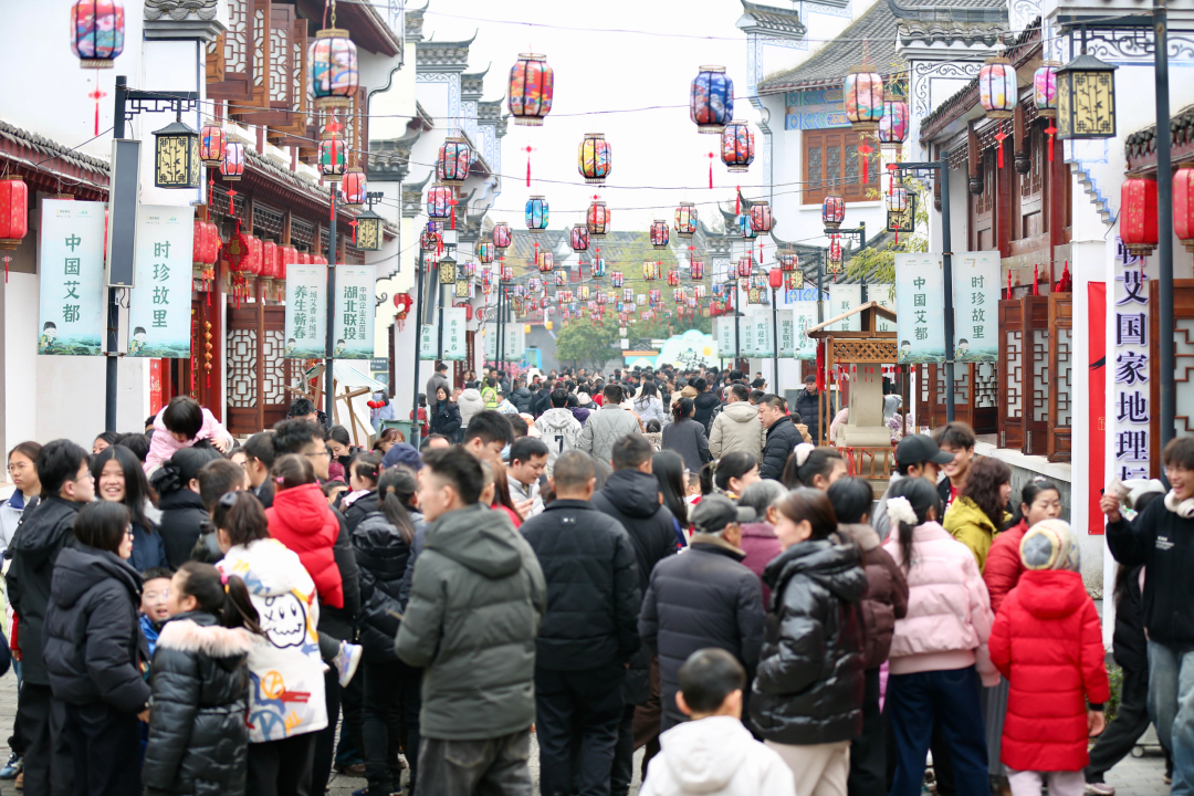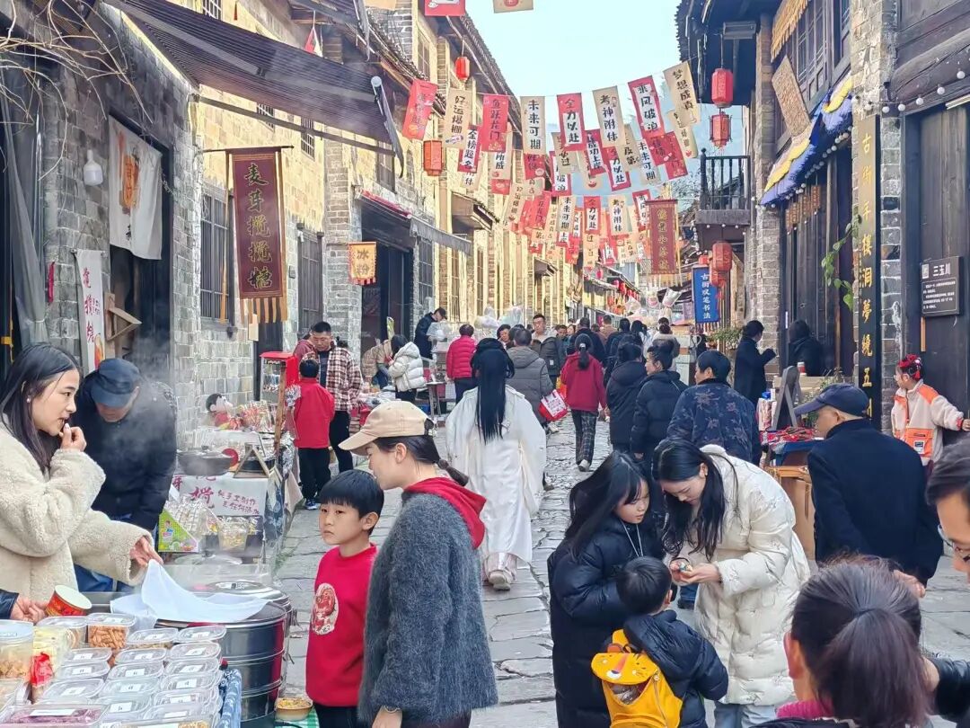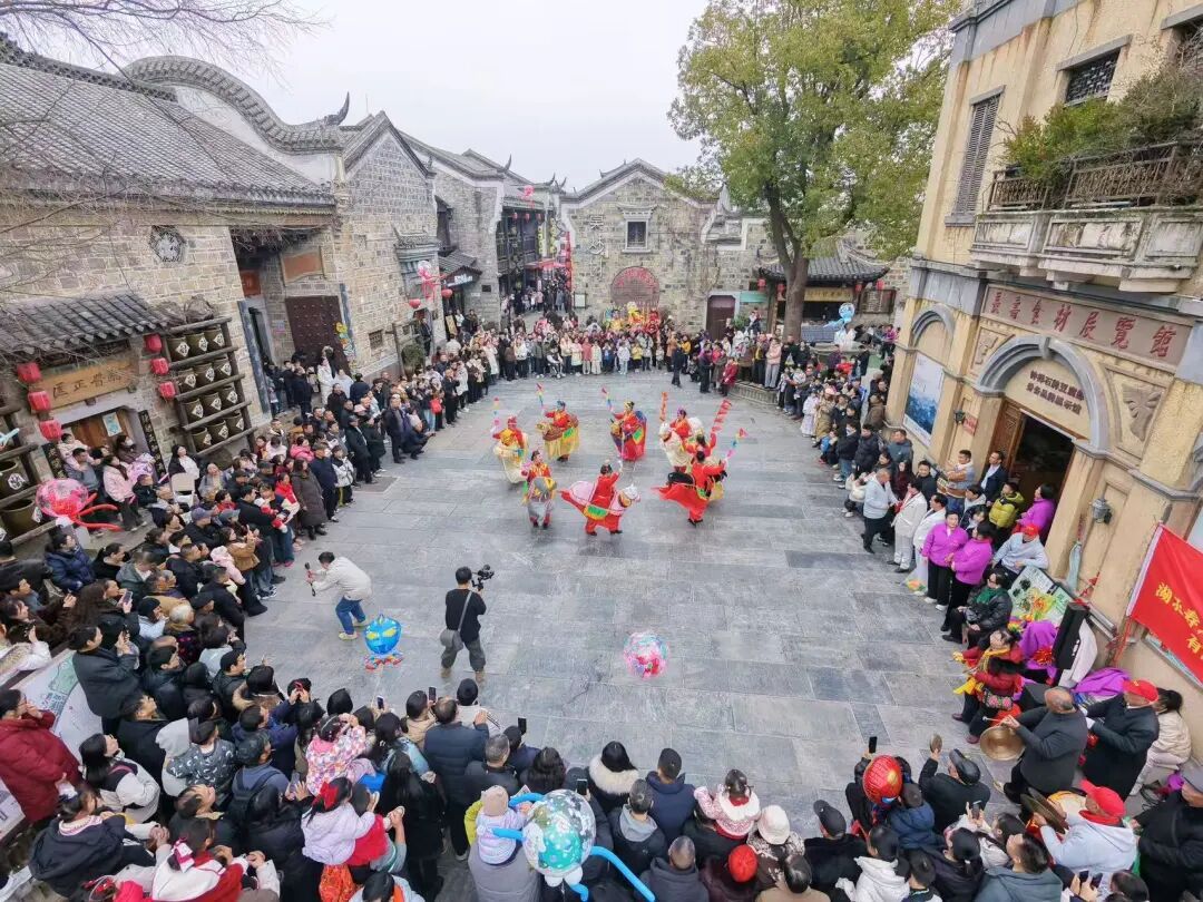 荆门明显陵文化旅游景区.莫愁村洋溢着浓厚的节日氛围,非遗民俗表演吸引众多游客围观