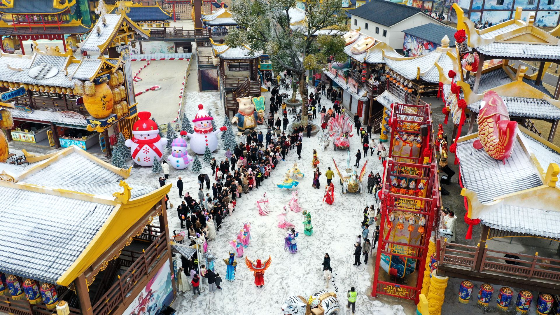 据了解,今年春节期间,景区精心打造了大型花车巡游、雪乡小镇、百场演艺秀、七彩祥云烟花秀等一系列年味十足的主题活动,为不同年龄段的游客提供了丰富的娱乐选择,让游客在“游、玩、赏、品”中全方位感受中国传统新年的独特魅力。