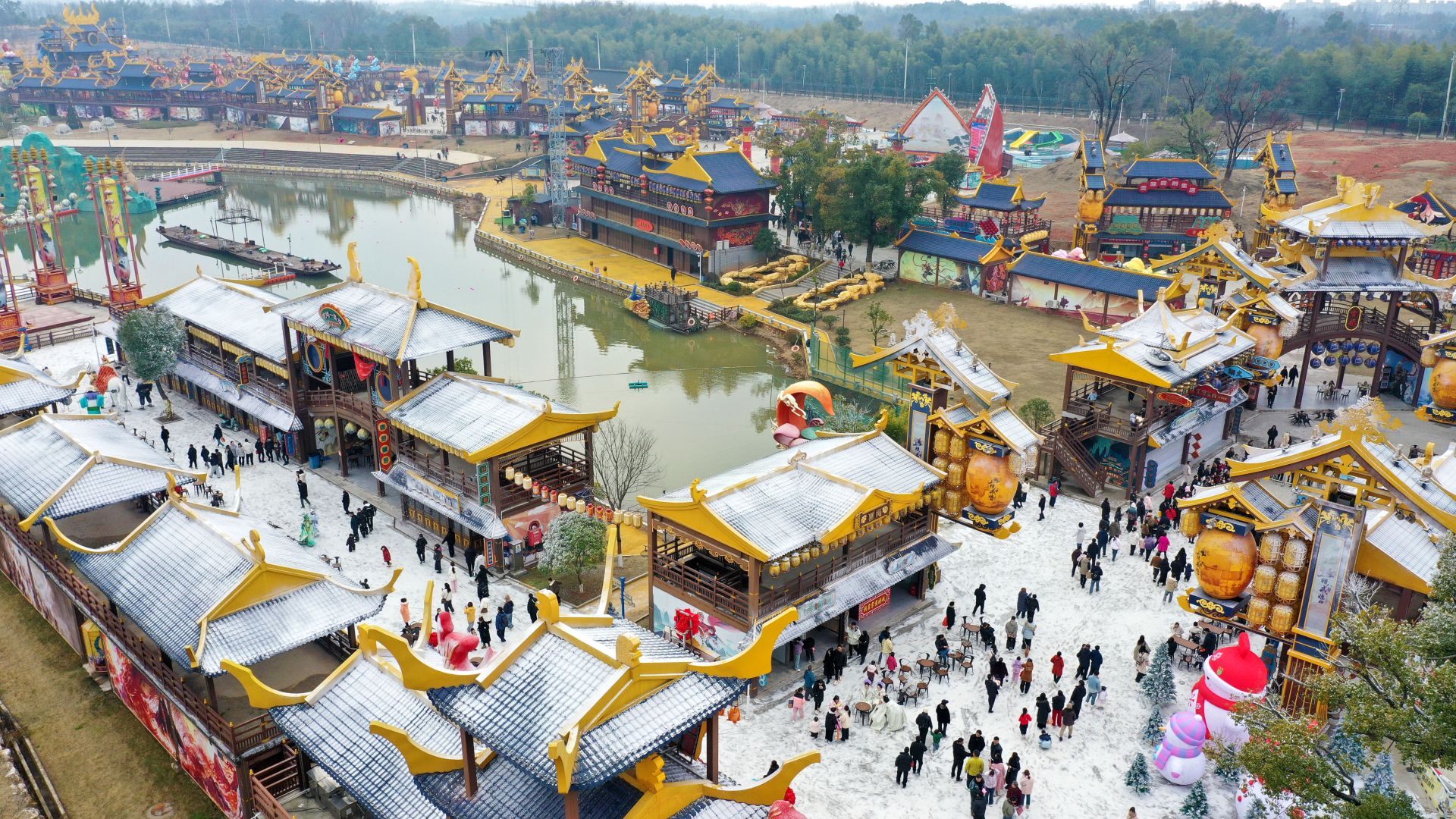 云上咸宁报道(记者 夏正锋 通讯员 龙钰 皮欢)2月17日,农历大年初一,嘉鱼县恋江湖·船歌岛景区内人头攒动,洋溢着浓郁的新春佳节气氛。