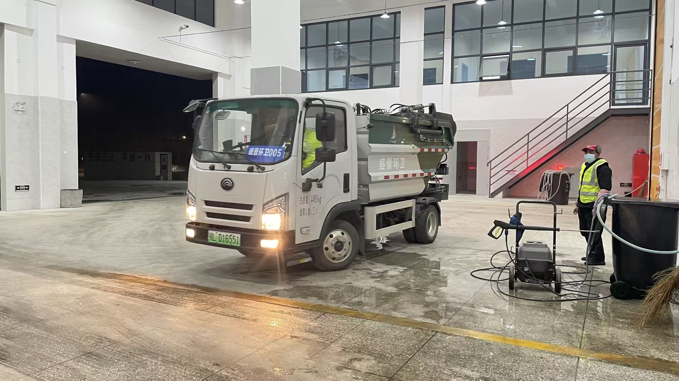 如果说街头的清扫是“前线”,那么垃圾压缩中转站就是这场战役的“心脏”。走进城北垃圾压缩中转站,机械的轰鸣声扑面而来。站内,一辆接一辆装满垃圾的收集车络绎不绝地进站。调度室里,大屏幕上实时显示着各重点区域的路面情况和车辆运行轨迹。操作员冯水英紧盯着中控系统的屏幕,手指熟练地操作着按钮,将倾倒进来的垃圾压缩成块。