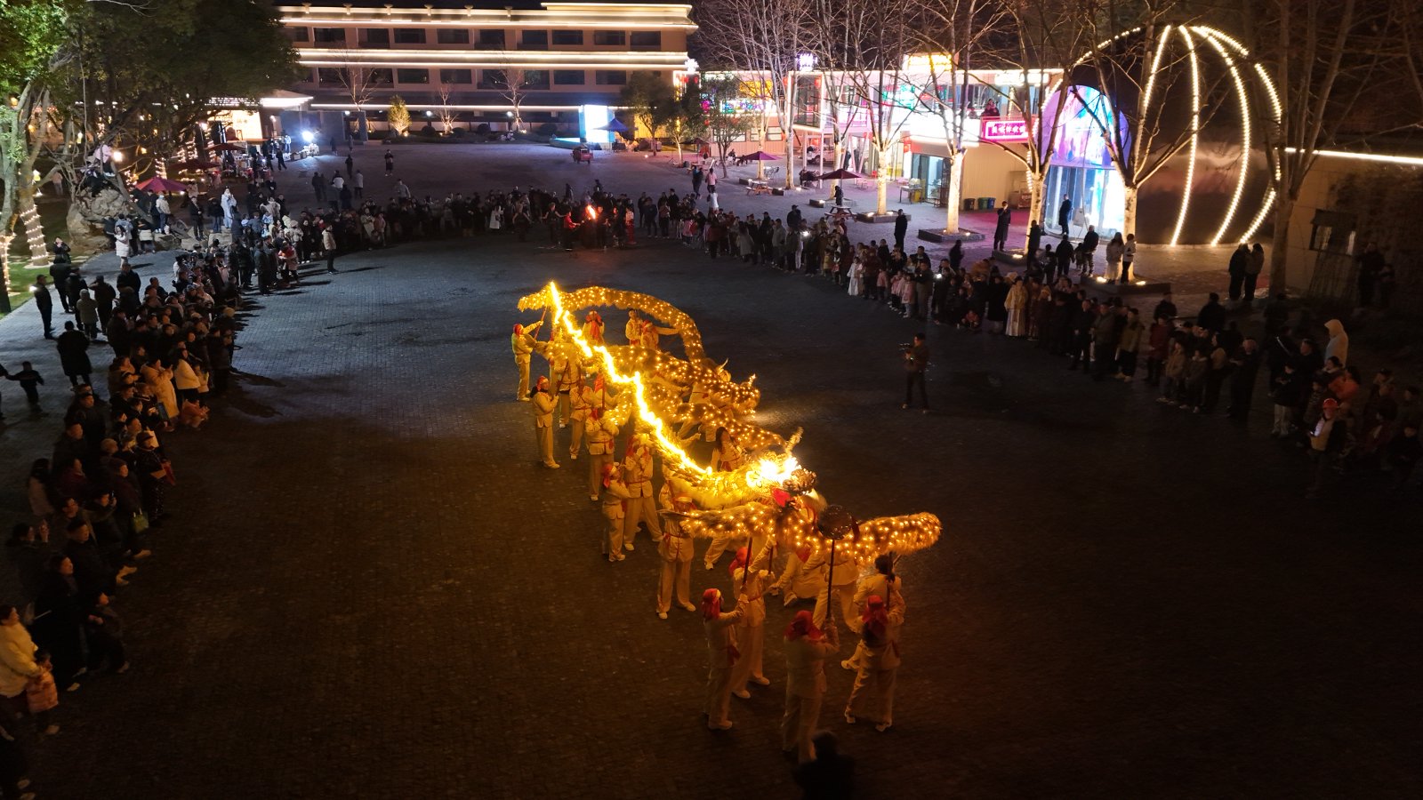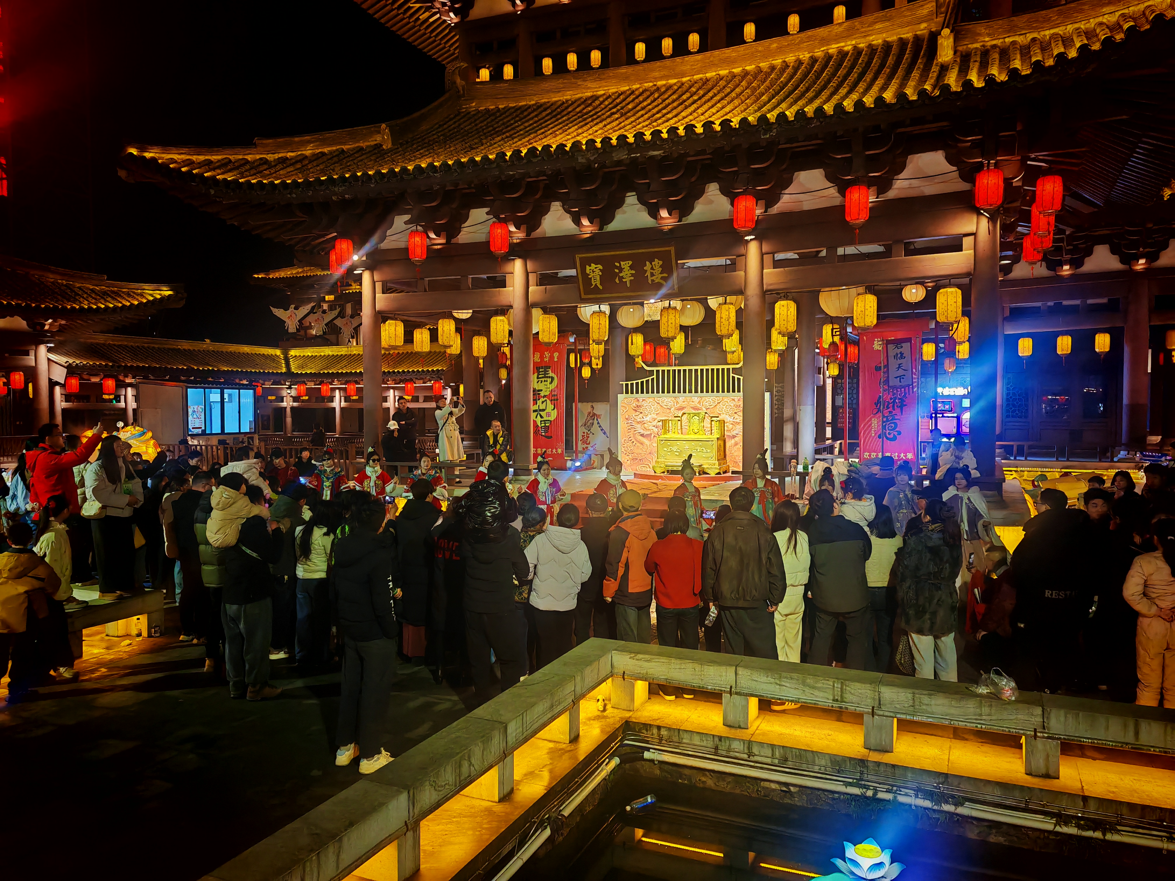 水陆空联动,夜间文旅新地标。大洲湖桂月湾新春灯会以10万㎡灯海、50组古法花灯点亮夜空,水上全息光影秀、26米巨龙巡游、热气球空中漫游等轮番登场,首创“水陆空”三维体验。家住湖边的周大爷和老伴坐上夜游船,感慨万千:“小时候这里是烂泥塘,哪敢想能坐着龙舟赏灯!”年轻妈妈王女士举着手机给外地丈夫直播:“家门口就是最好的打卡地,还有水幕动画讲咸宁文化,孩子特别爱看。”2月14日情人节音乐会,沙宝亮、胡灵登台献唱,现场人流涌动。