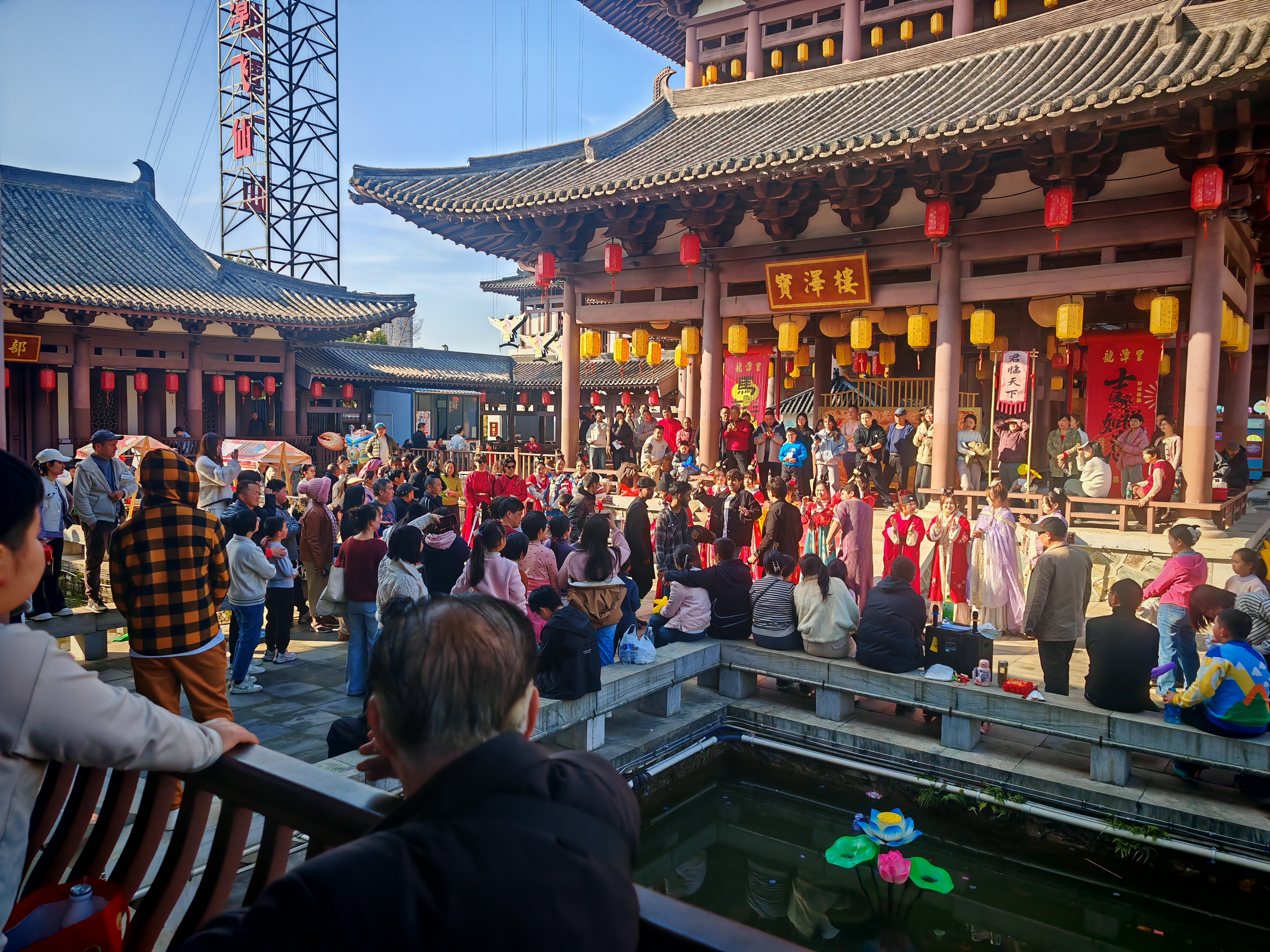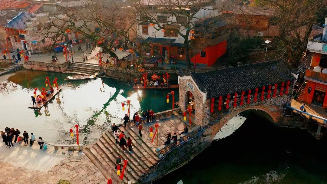 宋潮穿越,古风年味醉游人。龙潭里景区“宋潮年汇”让游客仿佛穿越千年。《月老招婿》脱口秀笑声不断,蹴鞠投壶前排起长队。市民陈先生带外地亲戚专程打卡:“朋友圈看到古风建筑就种草了,现场果然没失望。”春节前,央视《欢欢喜喜过大年》咸宁专场活动在龙潭里、梓有集录制,并于2月15日晚在CCTV-3首播,央视频、央视网同步播出,将鄂南年味、温泉桂花元素与马年特色完美融合,成功提升咸宁城市知名度。