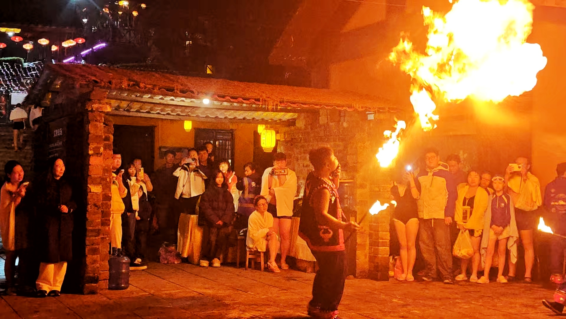 内冲古瑶村以“马年寻瑶记”为主题,将瑶族非遗民俗与新春氛围完美融合,成为乡村文旅的热门之选。身着瑶族特色服饰的阿哥阿妹沿古街巡游,主动与游客合影互动、随机派送新春红包,将马年福气传递给每一位来客。拍打舞、抢绣球、半山瑶舞等瑶族经典民俗活动轮番上演,原汁原味的表演让游客沉浸式感受瑶族文化的独特魅力。夜幕降临,璀璨灯火点亮整座瑶寨,大型沉浸式民族史诗演出《瑶望千年・云歌》震撼开演,深情诉说古瑶民族千年迁徙的沧桑与辉煌;熊熊篝火旁,瑶家儿女与各地游客手拉手载歌载舞,火光映着笑脸,歌声伴着欢笑,新春的喜悦在亲密互动中不断传递,民俗氛围感拉满。