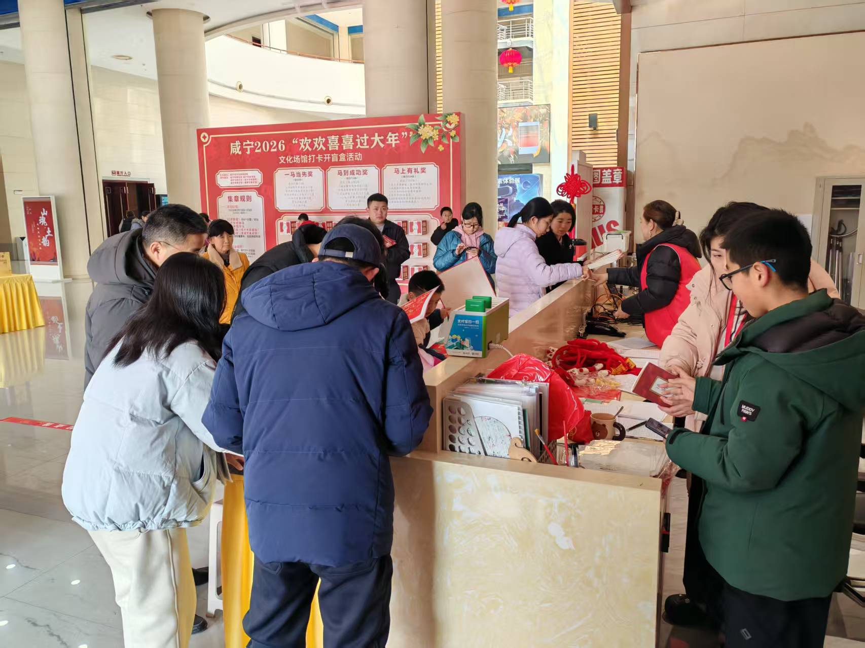 春节期间,咸宁市图文博美联合同步推出“打卡集章开盲盒”活动,盲盒中奖率100%,让市民与游客在沉浸式文化体验中喜迎新春。