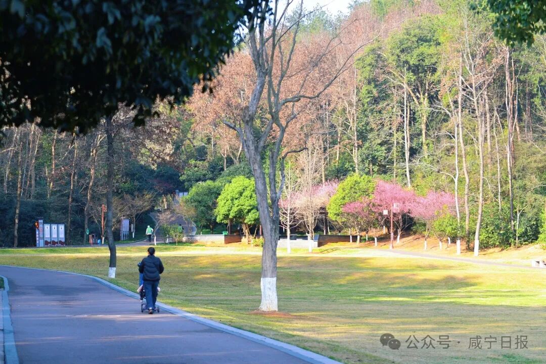 云上咸宁报道(记者 周阳 通讯员 龚俊琪)翠色依旧,清景宜人。春节期间,漫步咸宁城区,十六潭公园东入口的阳光大草坪上阖家休闲,丹桂大厦旁的主题小游园里市民边赏景边学国家安全知识,咸宁市人民广场的全龄空间中老少同游、笑语盈盈……