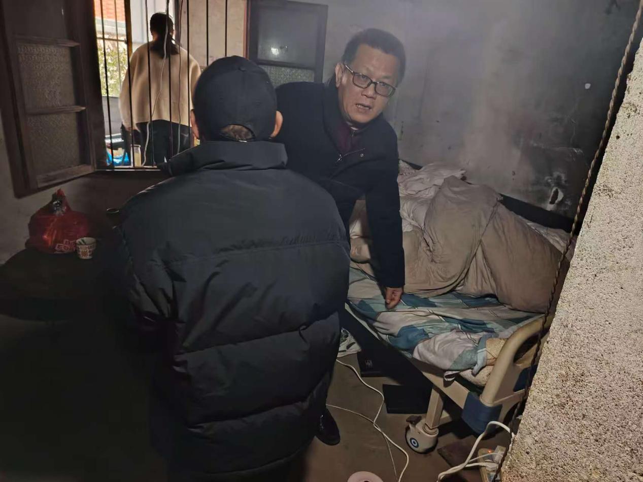 在黄畈社区,党员志愿者为特困老人整理床铺,认真检查床品棉絮是否厚实保暖。排查过程中,志愿者发现墙面电线存在老化问题,当场联系专业人员上门处理,并反复叮嘱老人注意日常用电安全。