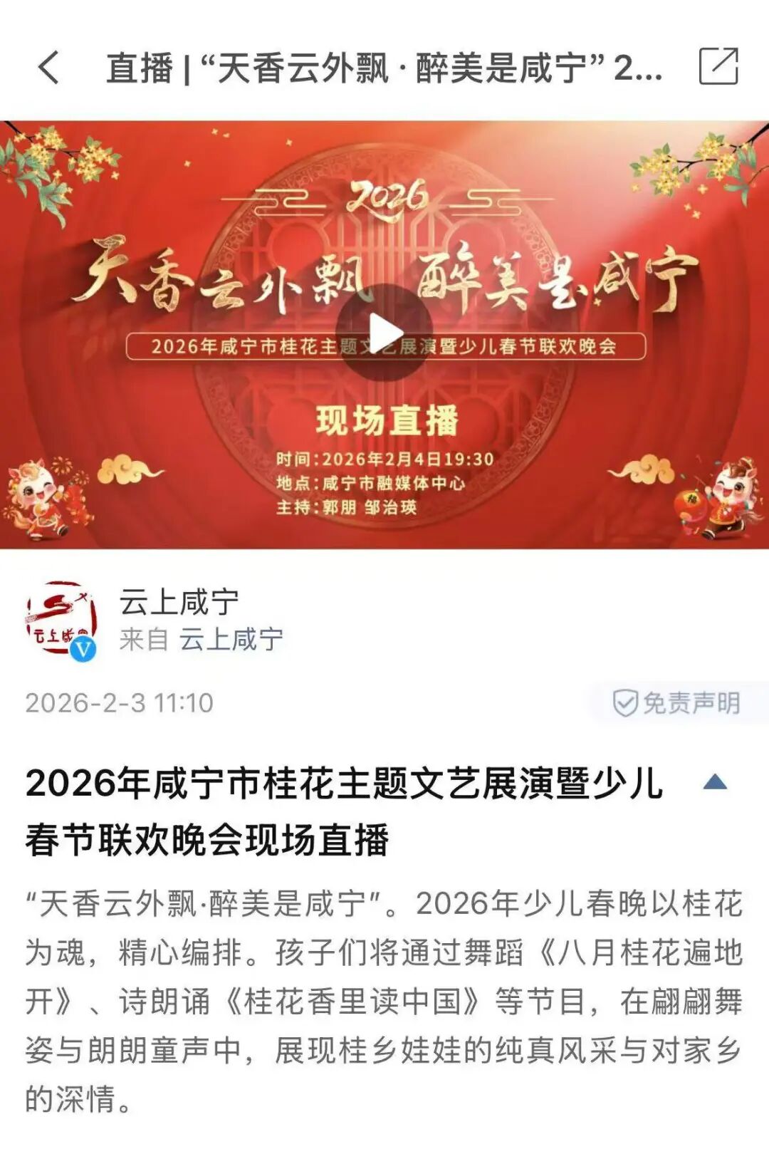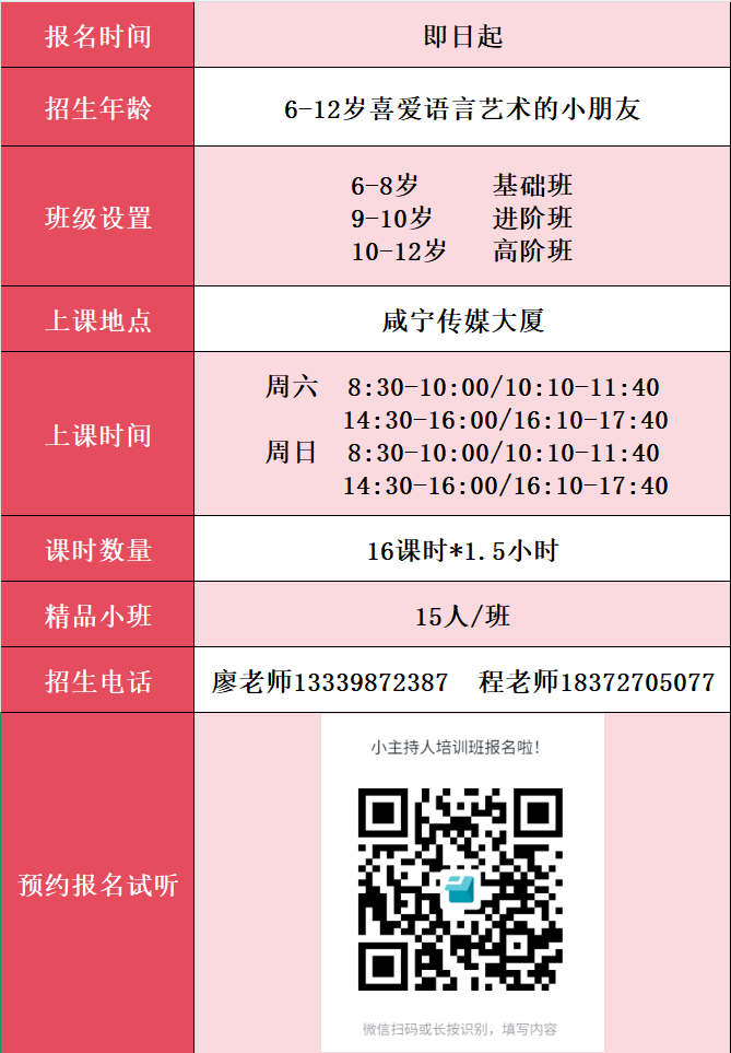 2026咸宁融媒广电星小主持人春季培训班招生简章