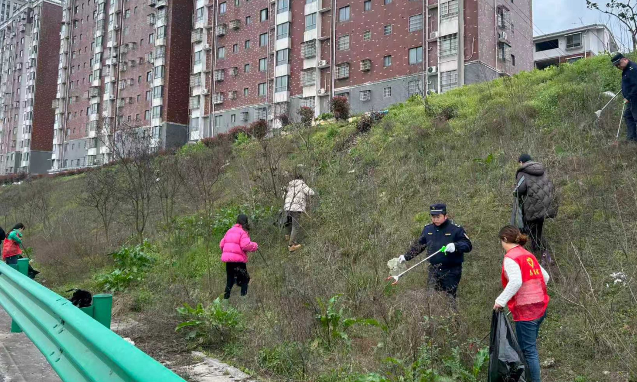 咸宁大道延伸段周边商业住宅与老旧小区交错分布,长期存在抛洒滴漏、无序堆放等问题。此次行动中,城管、社区、物业三方分工协作:城管负责法规宣传与秩序维护,社区志愿者动员居民参与,物业人员重点清理长期被忽略的区域,形成了综合治理合力。