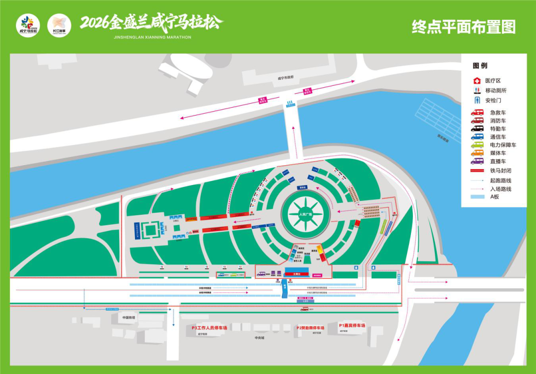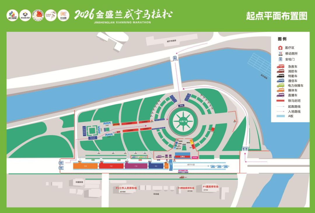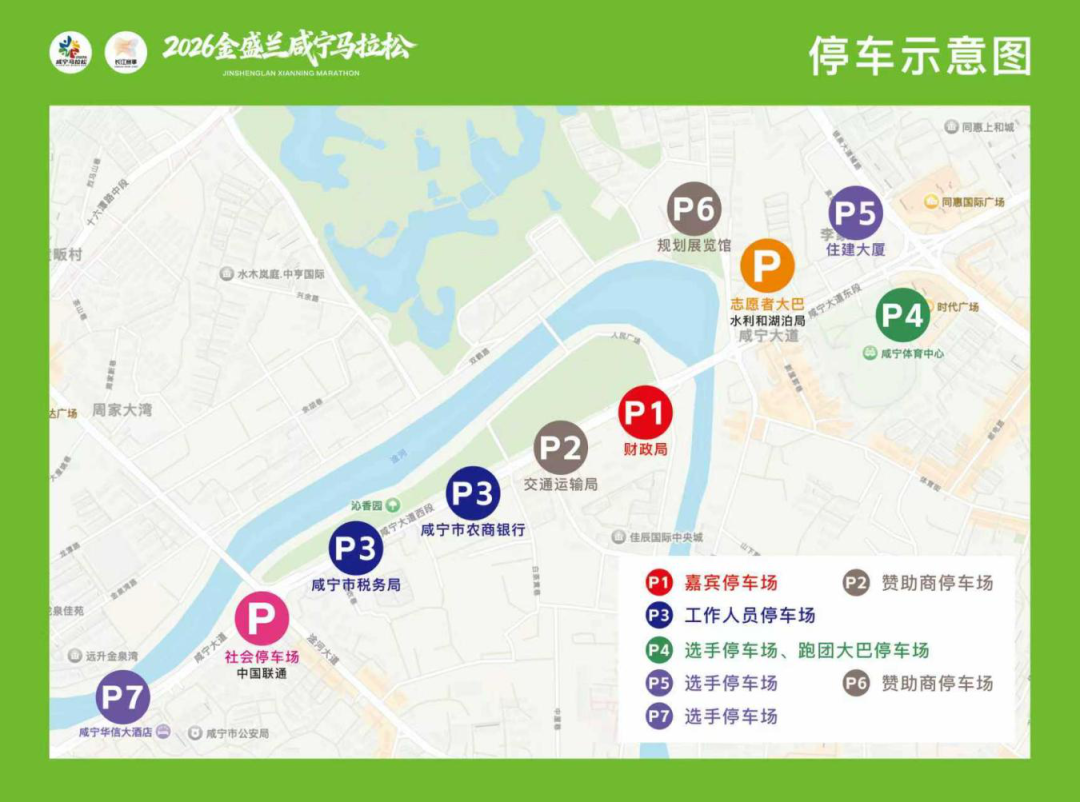 选手如选择驾驶机动车辆前往,可停放在住建局、体育中心、华信酒店、中国联通停车场,车位有限建议绿色出行。(需6:20分前进入,6点30分交通管控)