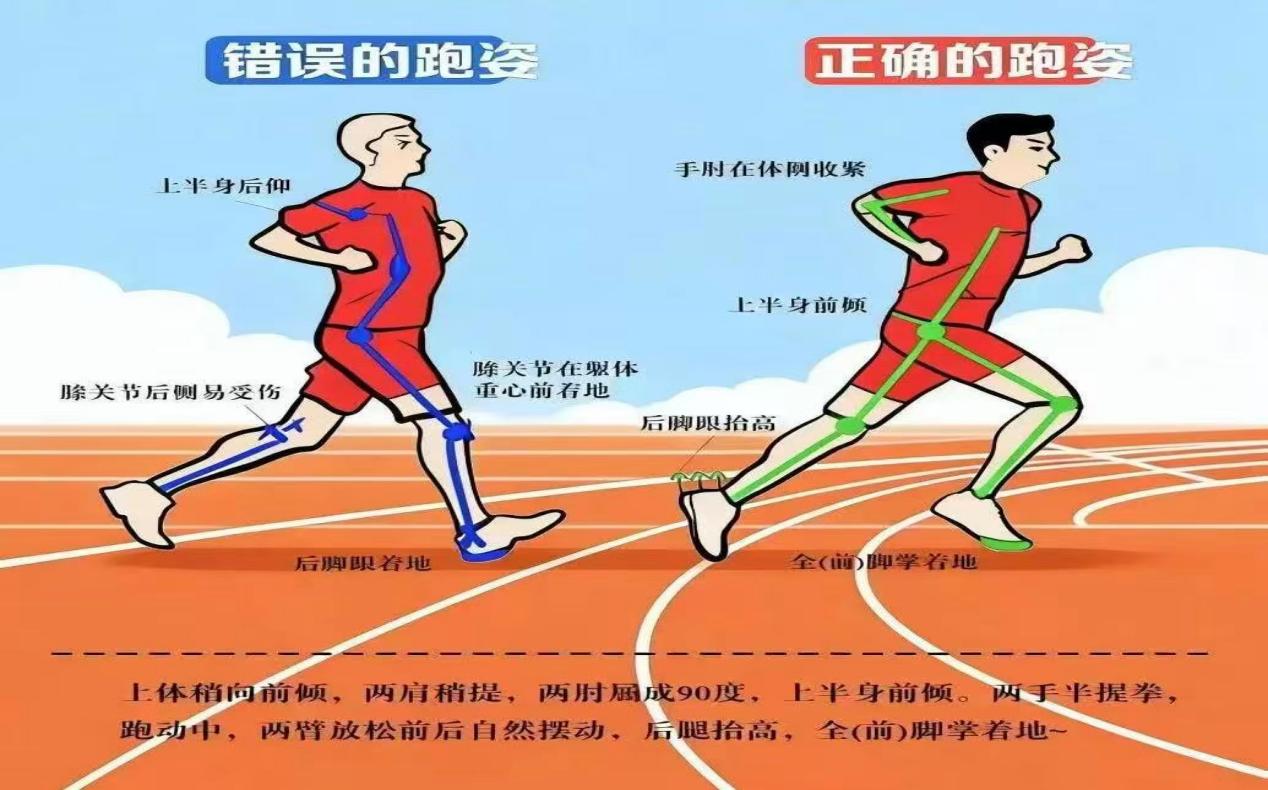 保持头部正直、目视前方,躯干微微前倾5°-7°,核心肌群收紧,避免身体左右摇摆或上下过度起伏;双臂弯曲90°,以肩关节为轴前后自然摆动,做到前不露肘、后不露手,维持身体平衡,减少关节额外受力。