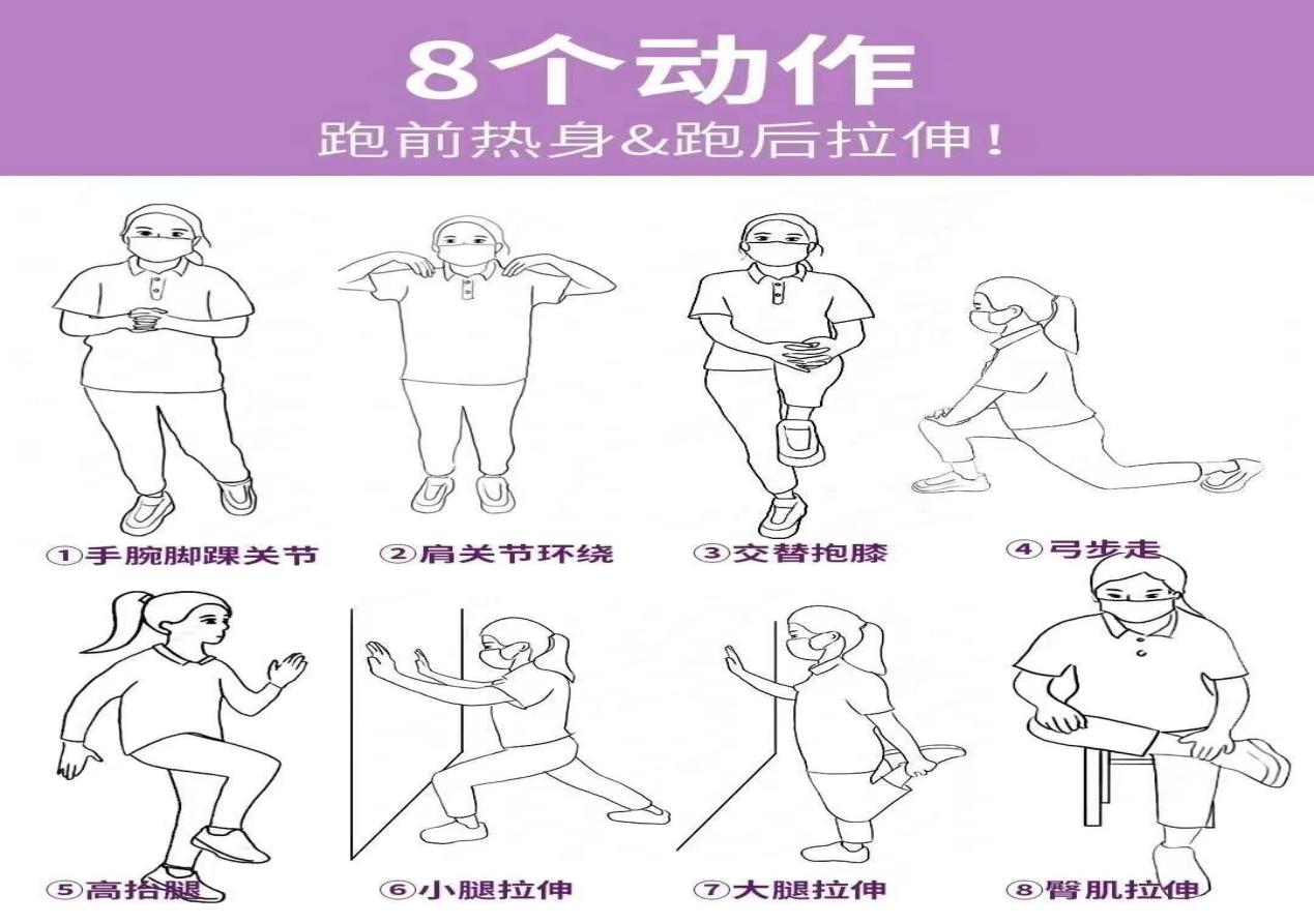 比赛当日严禁仅做静态拉伸,需完成5-10分钟动态热身,包括原地小步跑、弓步走、后踢腿、高抬腿、膝关节顺时针+逆时针环绕各20次等,充分激活肌肉、润滑关节腔、提升关节灵活性,从源头降低肌肉拉伤、关节扭伤概率。有膝关节旧伤、退行性关节炎的跑者,需结合自身状况量力而行,不盲目追求配速与完赛距离。