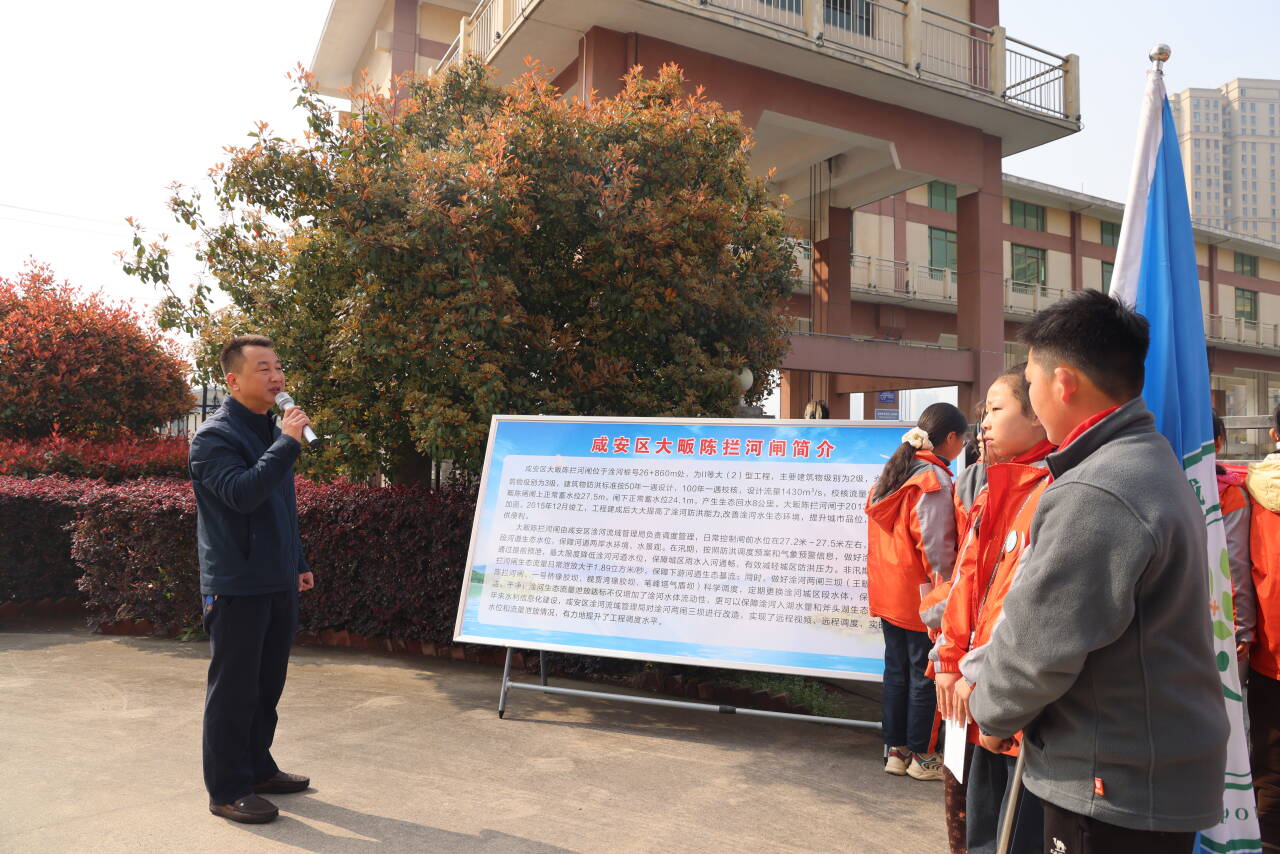 春水初生,淦河两岸绿意盎然。活动中,学生们开展集体倡议宣誓,咸安区水利和湖泊局志愿者向青少年们介绍《咸宁市淦河保护条例》,带领大家参观水利设施及信息化调度流程。通过现场讲解,学生们体会到了水资源管理的科学性与严谨性,对家乡“母亲河”的保护与管理有了更深刻的认识。
