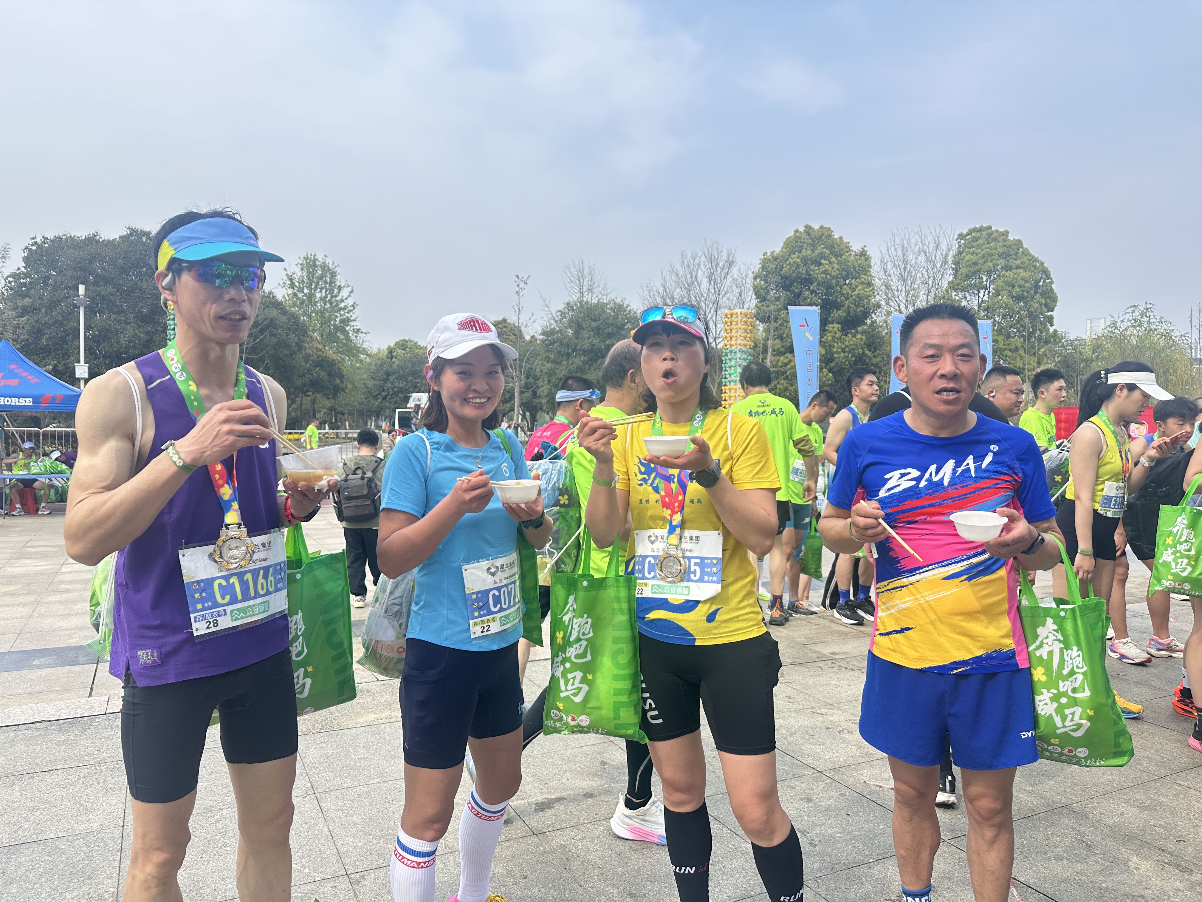 随着最后一批全马选手冲过终点线,比赛圆满落幕。对于许多跑者来说,完赛后第一件事不是急着去拉伸,而是循着香味去寻找那一口地道的咸宁味道。跑者陈亮说:“冲过终点线,人已经很累了,但闻到这鸡汤的香味,瞬间感觉整个人都精神过来了!鸡汤很好喝,咸宁人民很热情。”